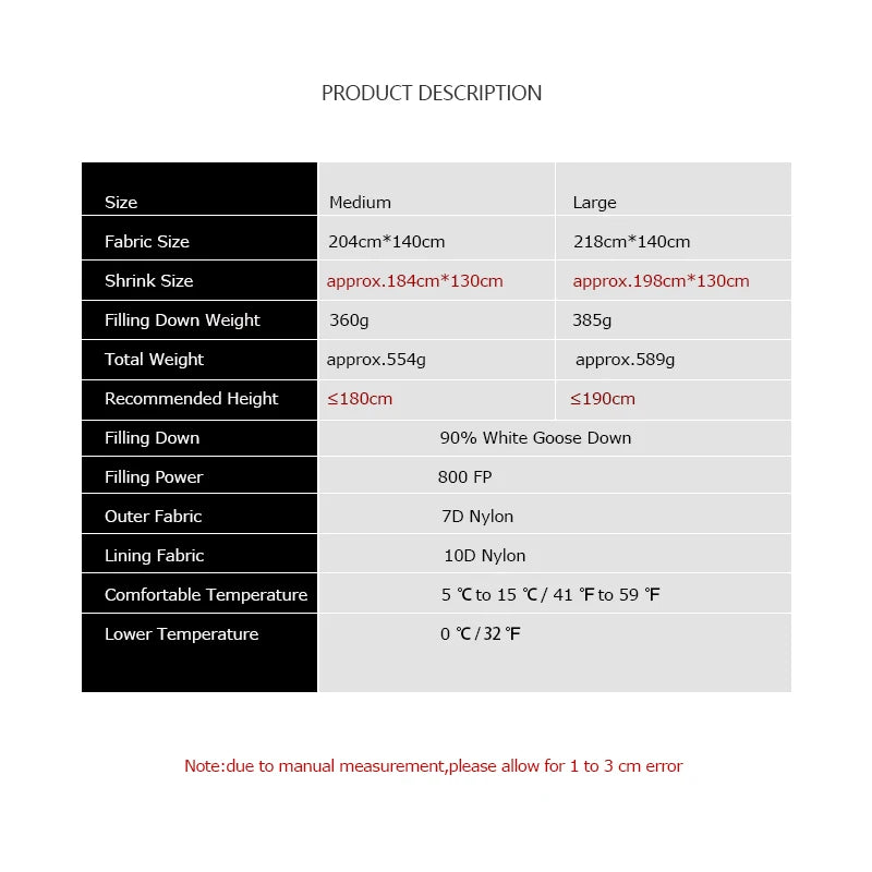 Sleeping Bag Temperature Scale Category: Winter Sleeping Bag