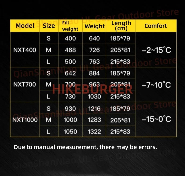 Name: NXT Mummy Goose Down Sleeping Bag
