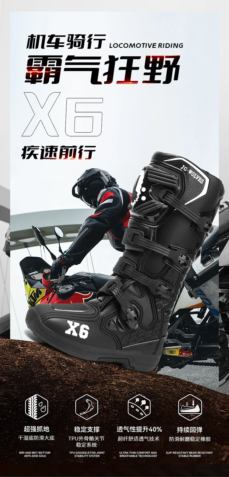 JG · WOLVES/Nine-strand Wolf Off-Road Motorcycle Riding Shoes Rally Forest Road Boots Men's Anti-Drop Knight Equipment