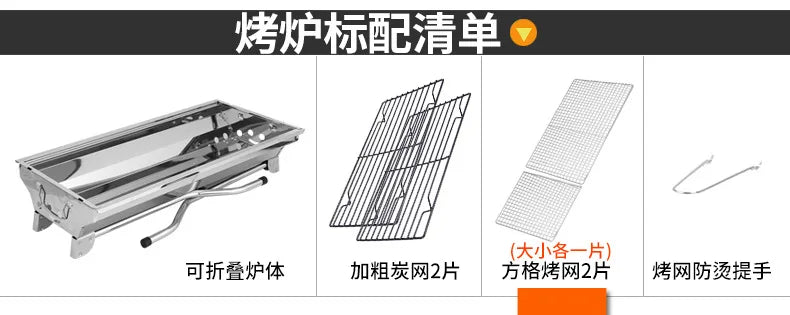 JOYLOVE Stainless Steel Barbecue Grill Charcoal Barbecue Grill BBQ Carbon Grill Outdoor Folding Portable Barbecue
