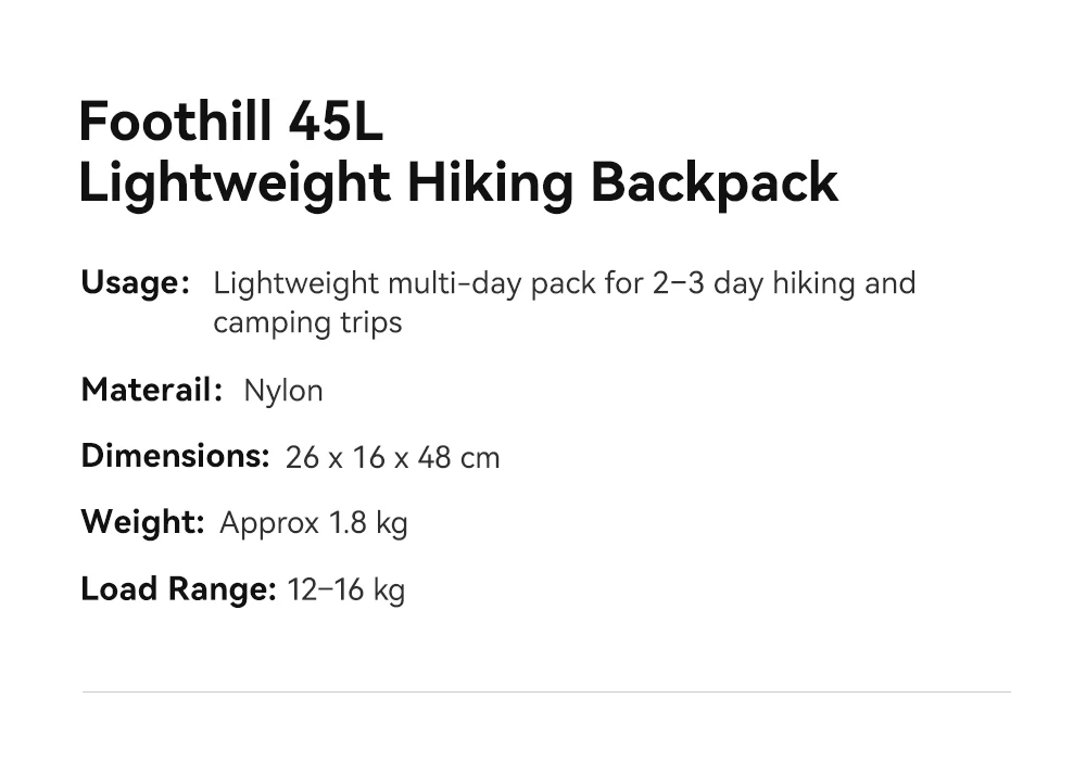 KAILAS Foothill 45L Large Capacity Hiking Backpack Lightweight Durable Women Men Outdoor Climbing Bags KA2453004