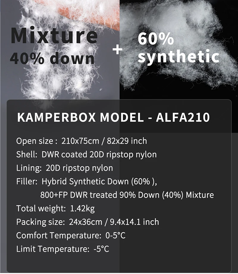 Kamperbox Sleeping Bag Camping Ultralight Outdoor Sleeping Bag Down 0-5°C Alfa210