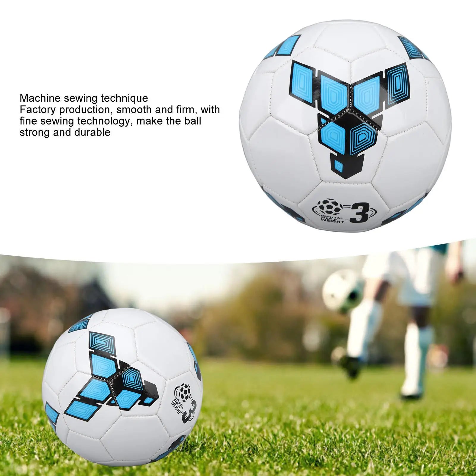 1. PVC Material: This sports soccer ball is made of premium PVC material, with great wear proof performance and excellent elasticity, provide excellent durability throughout the years!2. Size 3: This soccer ball is built to size 3 weight and size specifications, is the perfect size for toddlers and young kids who are just learning the game.
