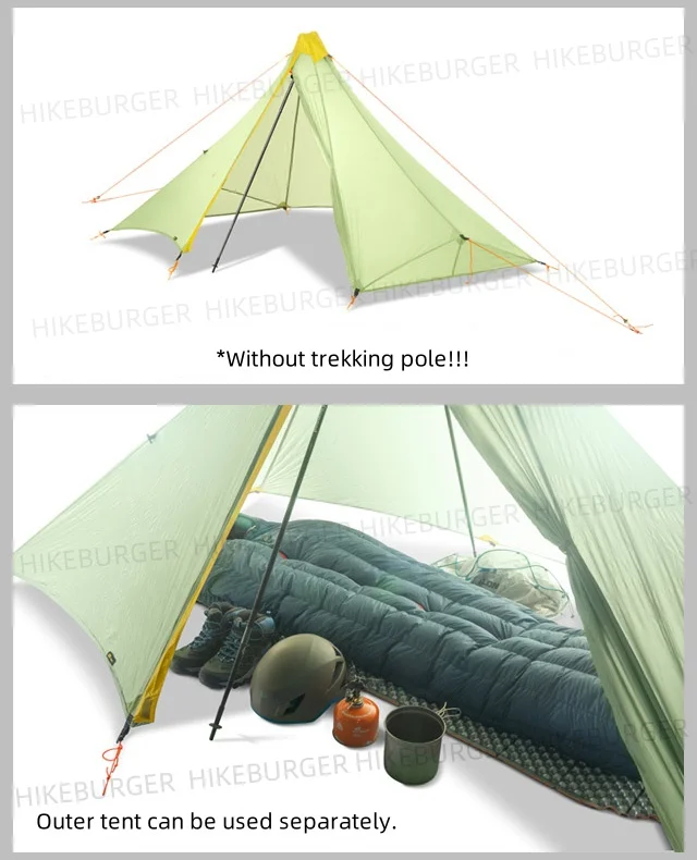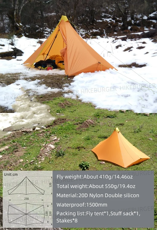Knot Maya 1P Pyramid Tent Outdoor Ultralight No Pole Tent Camping 20D Nylon Double Silicone Waterproof Hiking Backpack Tent