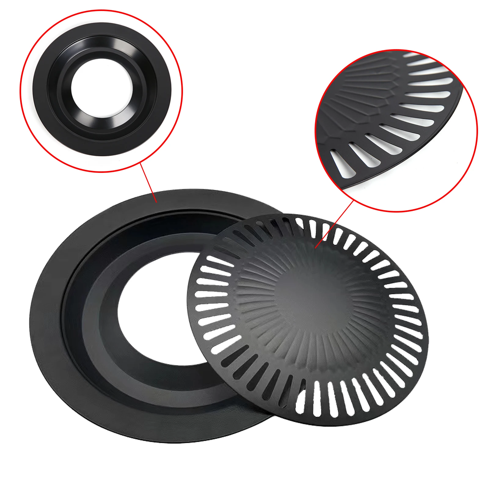 3,【Prevent Greasily】: The BBQ plate's streamlined sump directs excess grease to the sump below, preventing overly greasy food. The water-filled outer ring traps fat and juices during cooking, reducing smoke and splashing.