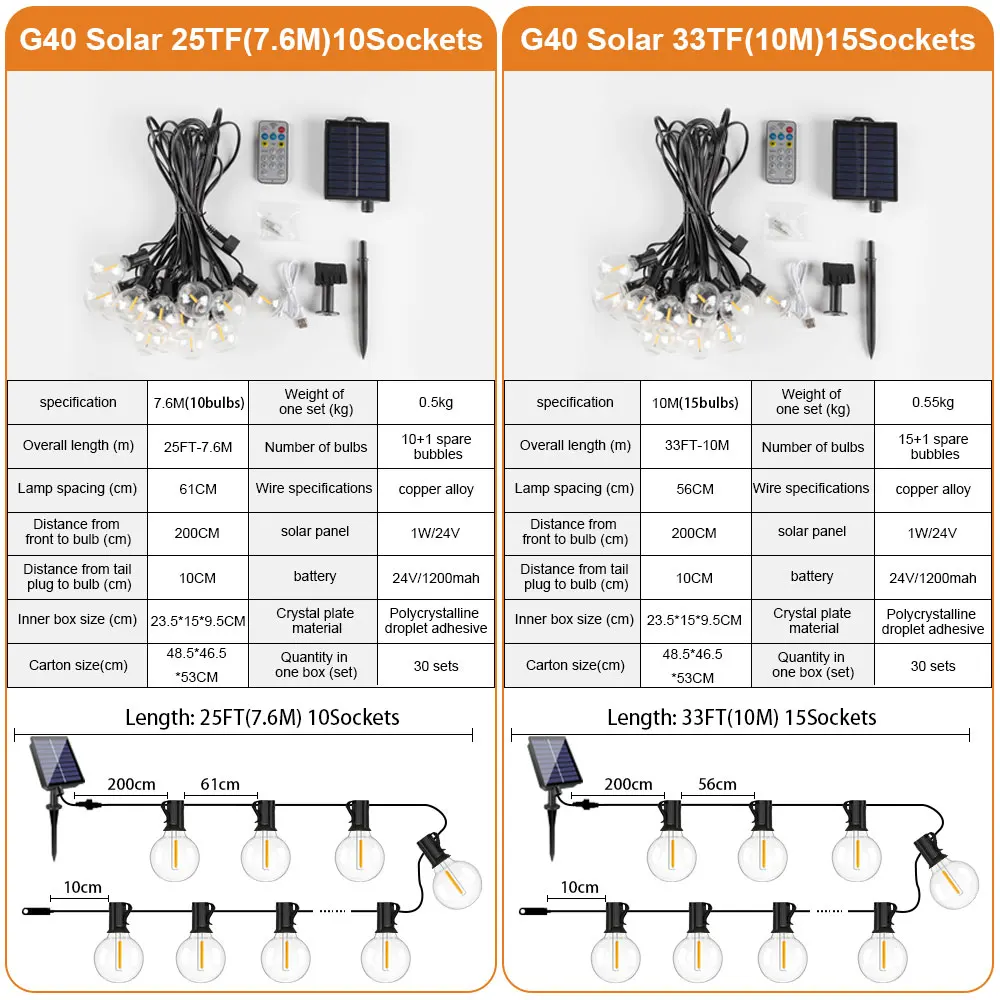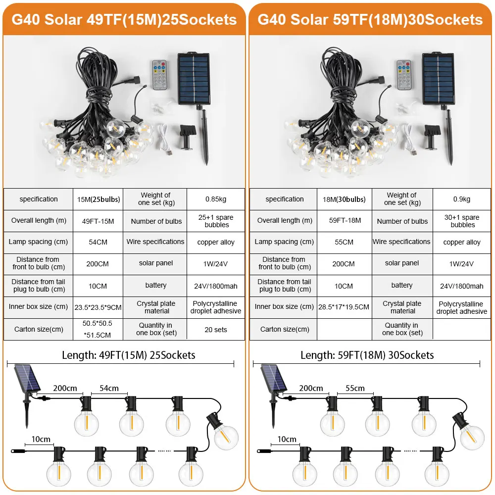 Model Number: Led G40 Solar String Lights Outdoor Waterproof Garden String Lights US