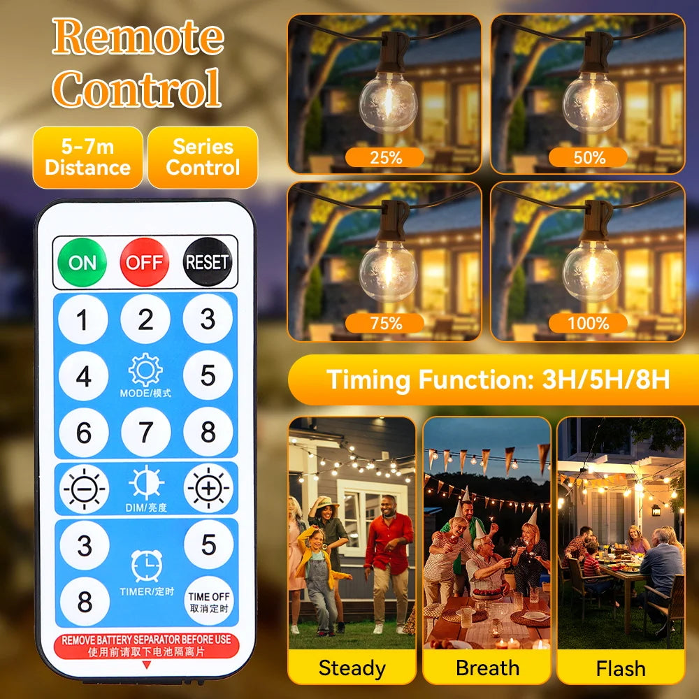 LED Solar String Lamp Waterproof Garden Lights Outdoor Remote Control Solar Camping Tent Lighting for Party Backyard Decorative