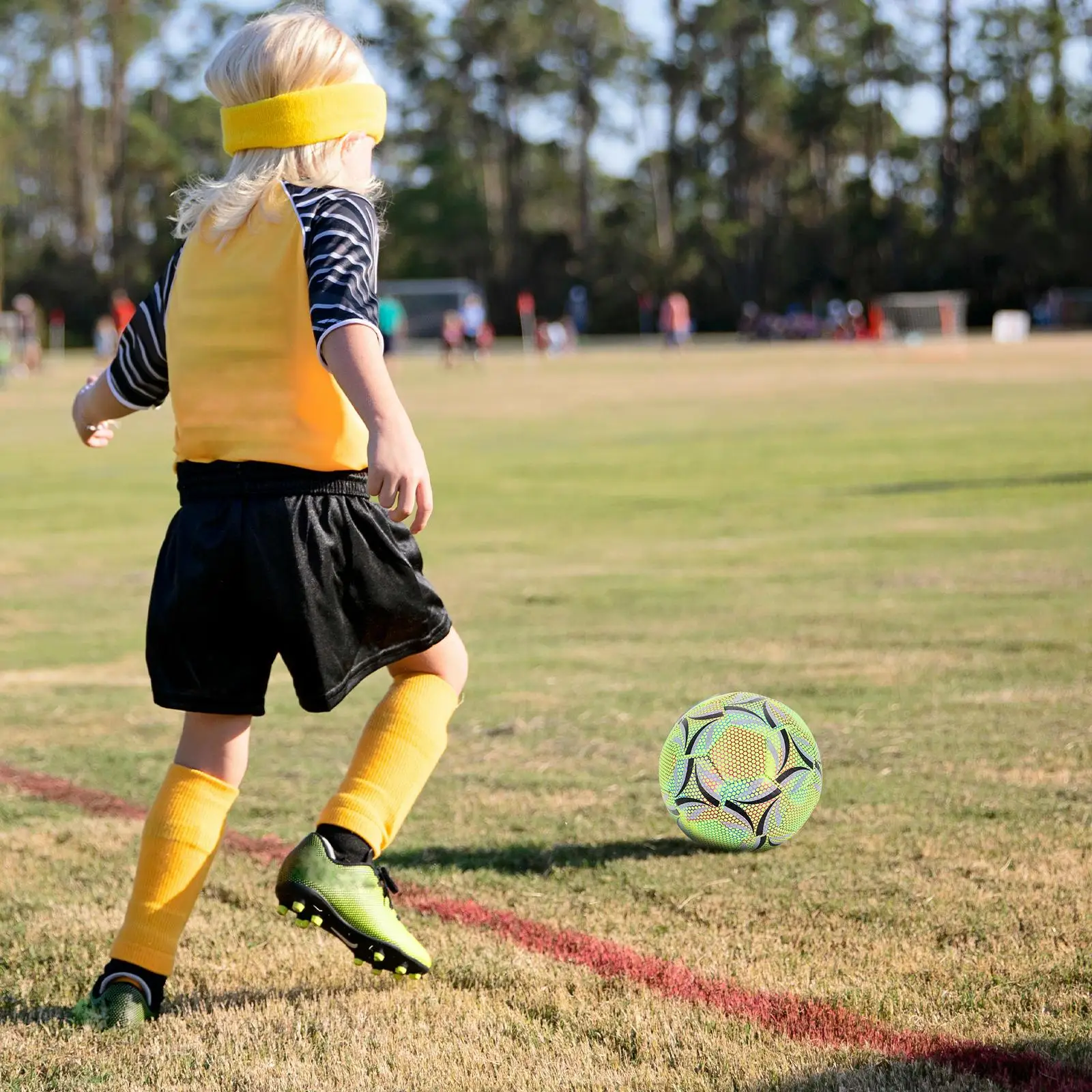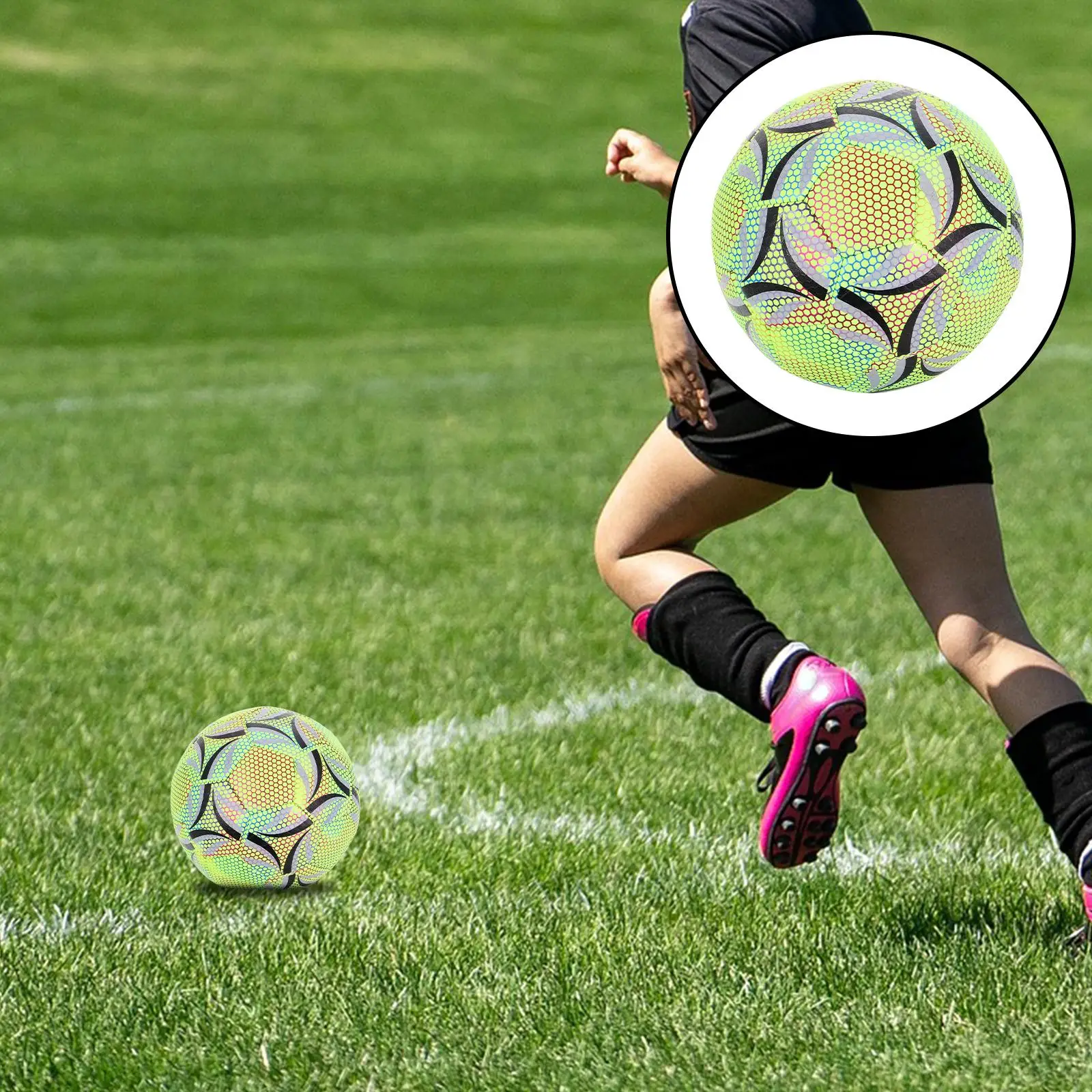 This match-grade soccer ball is ideal for youth and adult training sessions. Whether you're practicing your dribbling skills or engaging in a competitive match, this soccer ball ensures optimal performance. Its practical construction makes it suitable for both indoor and outdoor use, providing a consistent feel and excellent control. glow in dark soccer ball