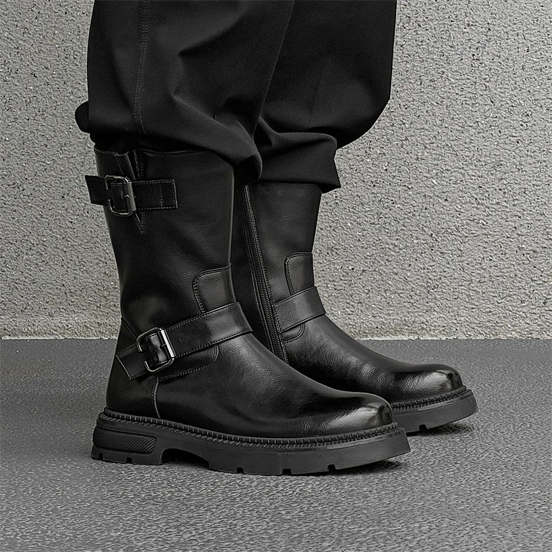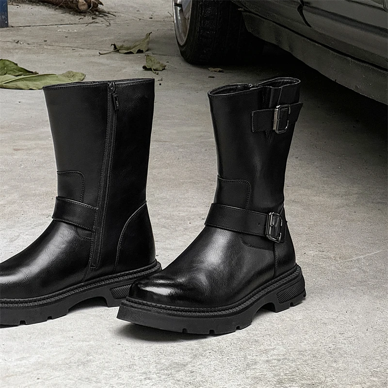 men casual cosplay nightclub long knight boots genuine leather platform shoes vintage cowboy high boot designer motorcycle botas