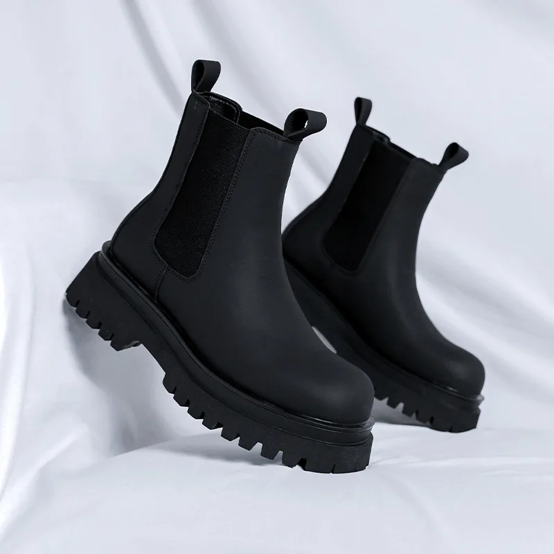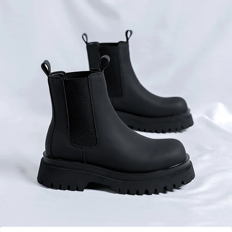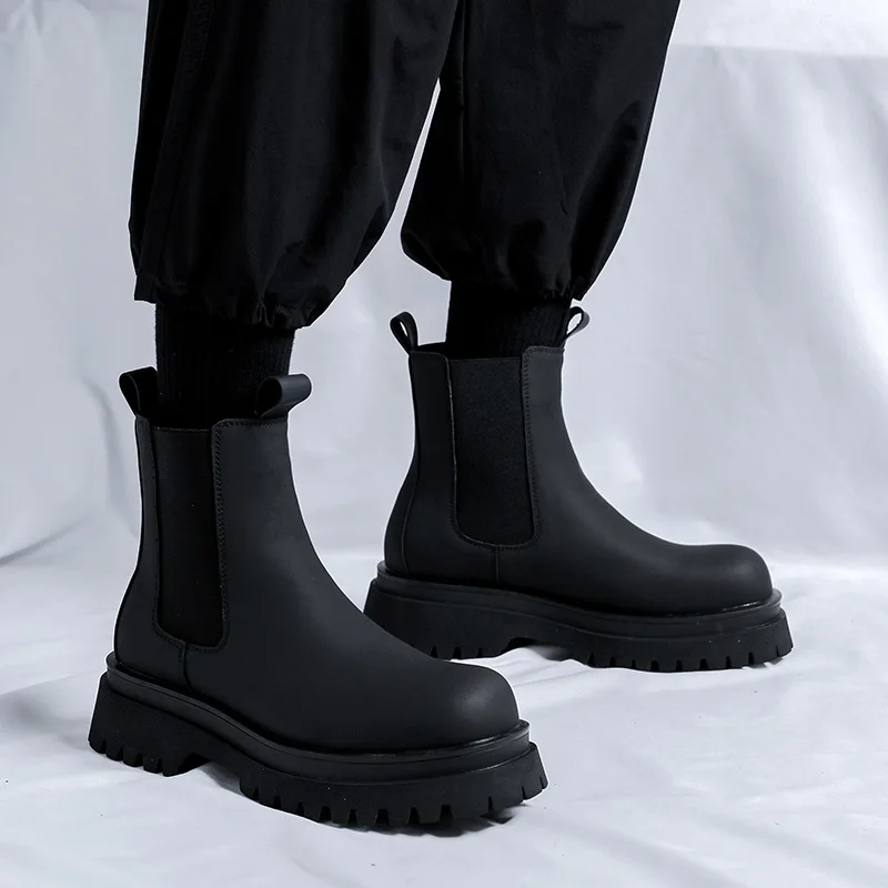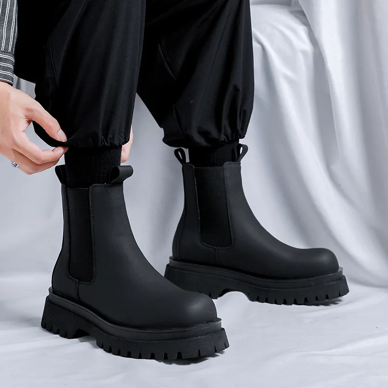 men luxury fashion high motorcycle boots black stylish platform shoes cowboy original leather boot handsome chunky chelsea botas