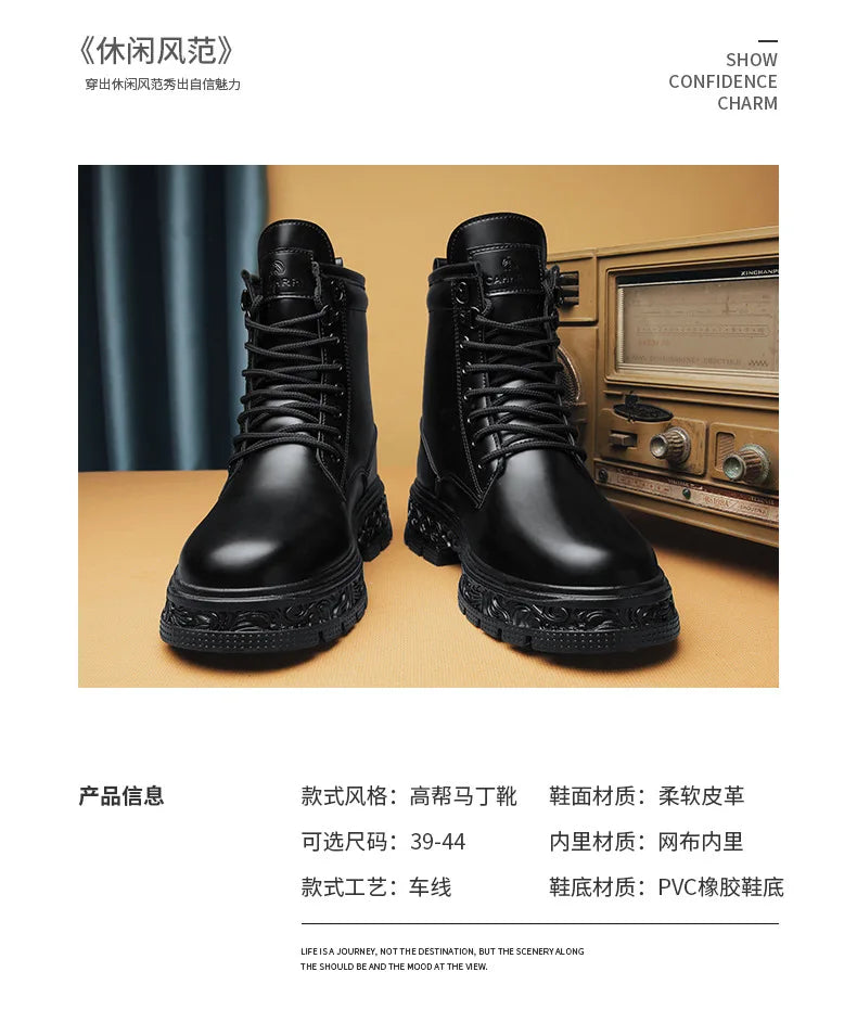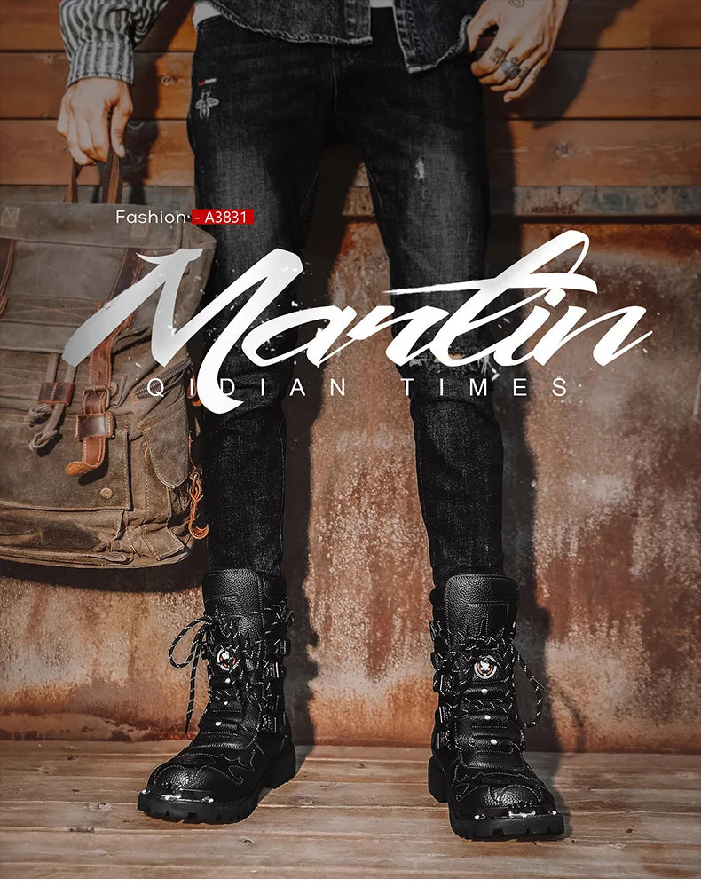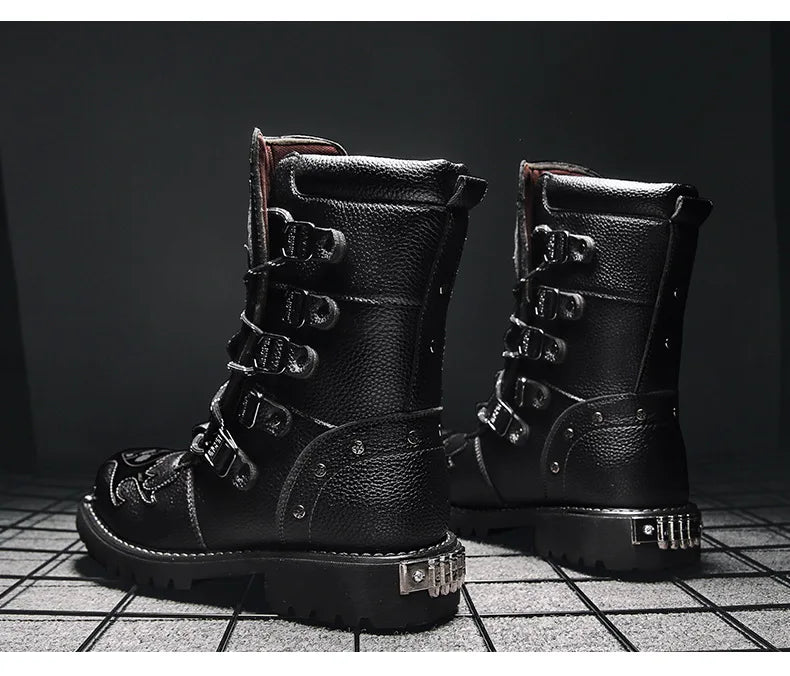 Men Motorcycle Boots Fashion Mid-Calf Punk Rock Punk PU Leather Black High Top Mens Casual Boot Steel Toe Shoes Big Size 38-46