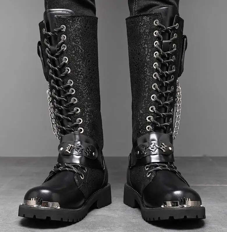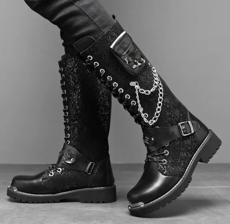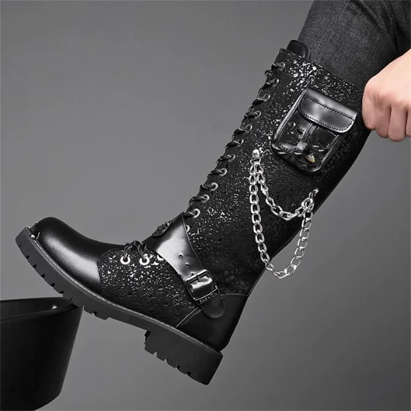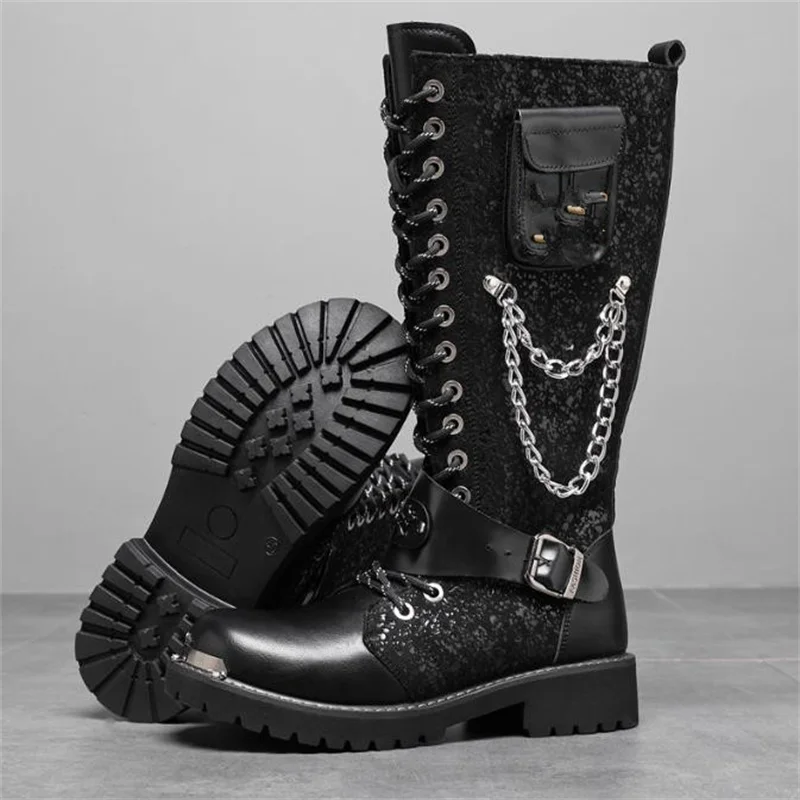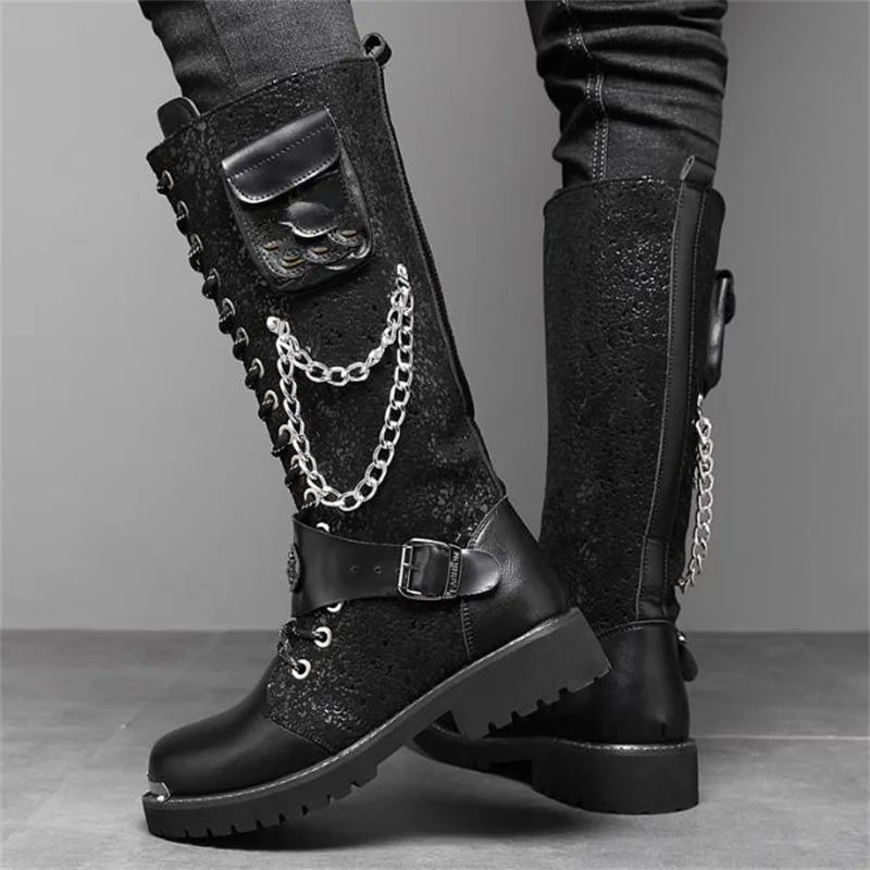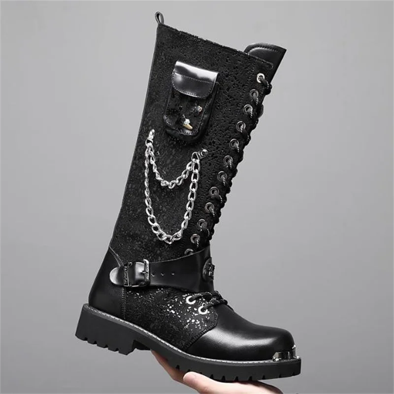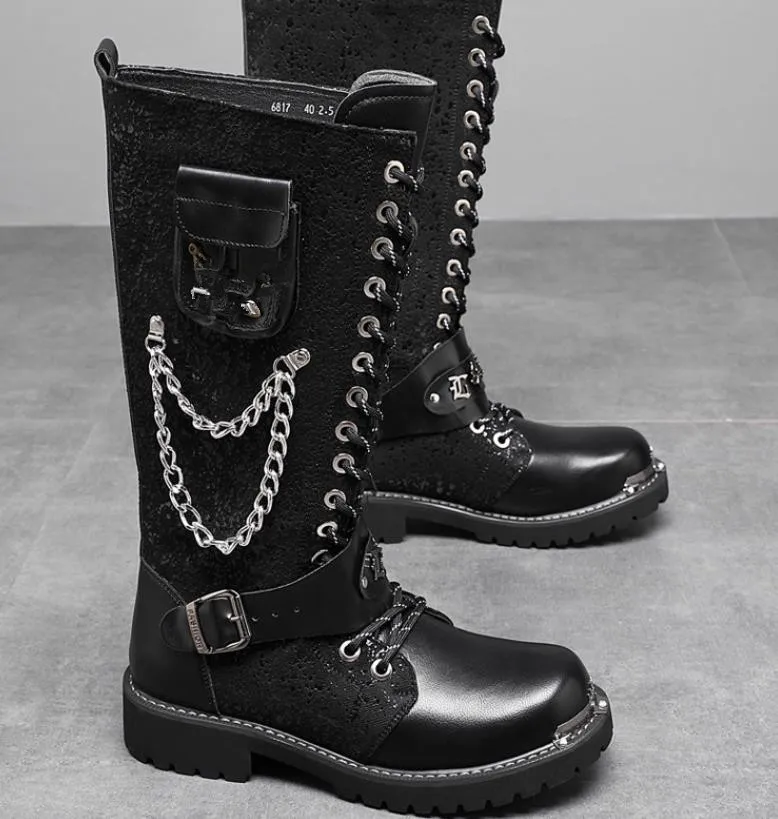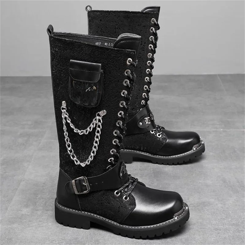 Men Motorcycle Boots Mid-calf Breathable Combat Boots Gothic Belt Punk Boots Men Shoes Hightop Casual Metal toe boots 38-46