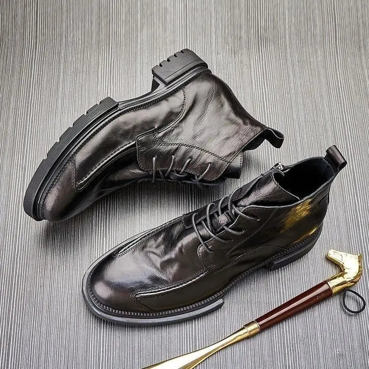 Men Shoes Leather Retro Men Boots Leather Ankle Boots Motorcycle Boots Cowboy Boots Show Bar Fashion Combat Boots