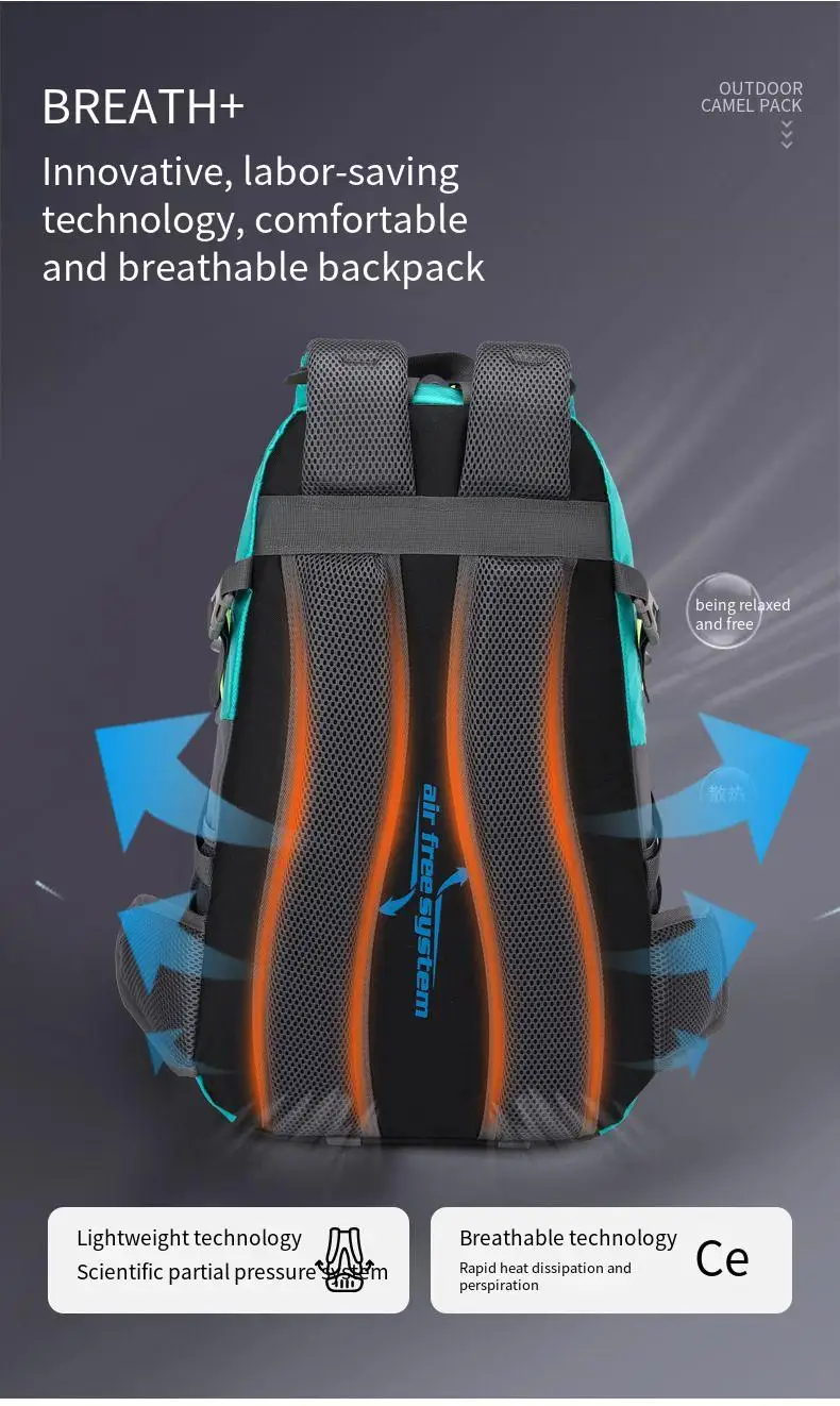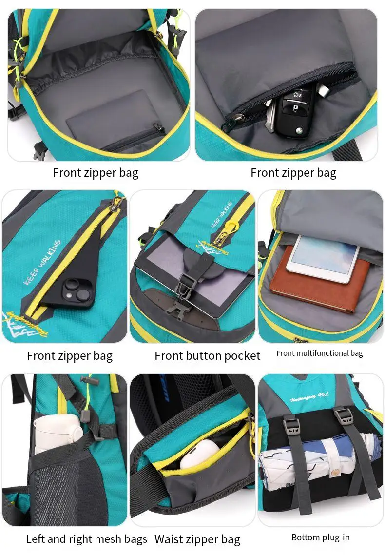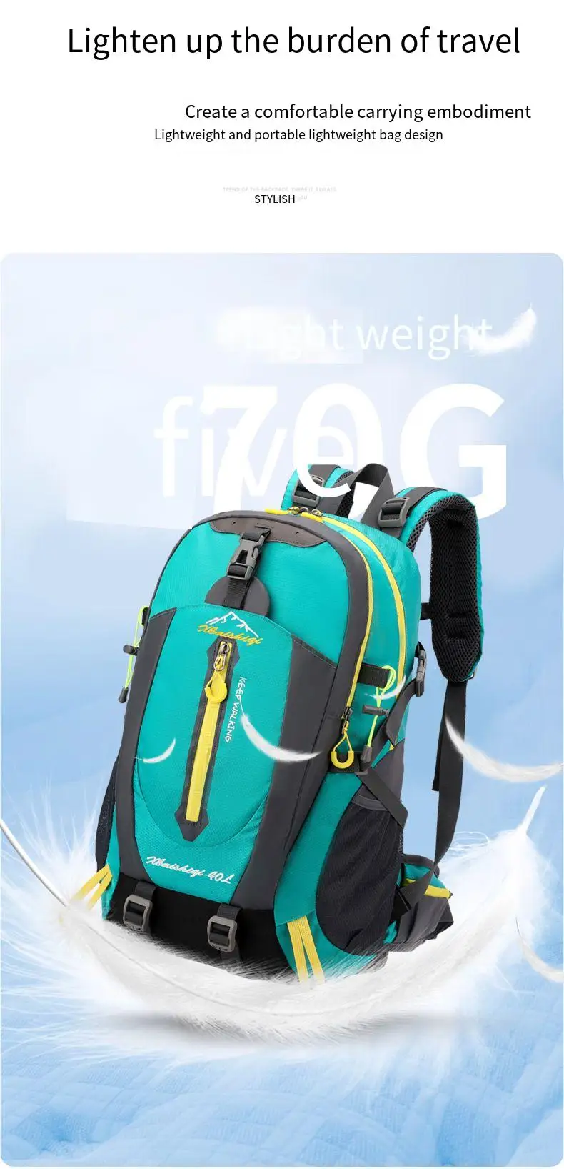 Men Women Outdoor Camping Travel Backpack 40L Water Repellent Climbing Hiking Laptop Daypack Trekking Reflective Strip Back Bags