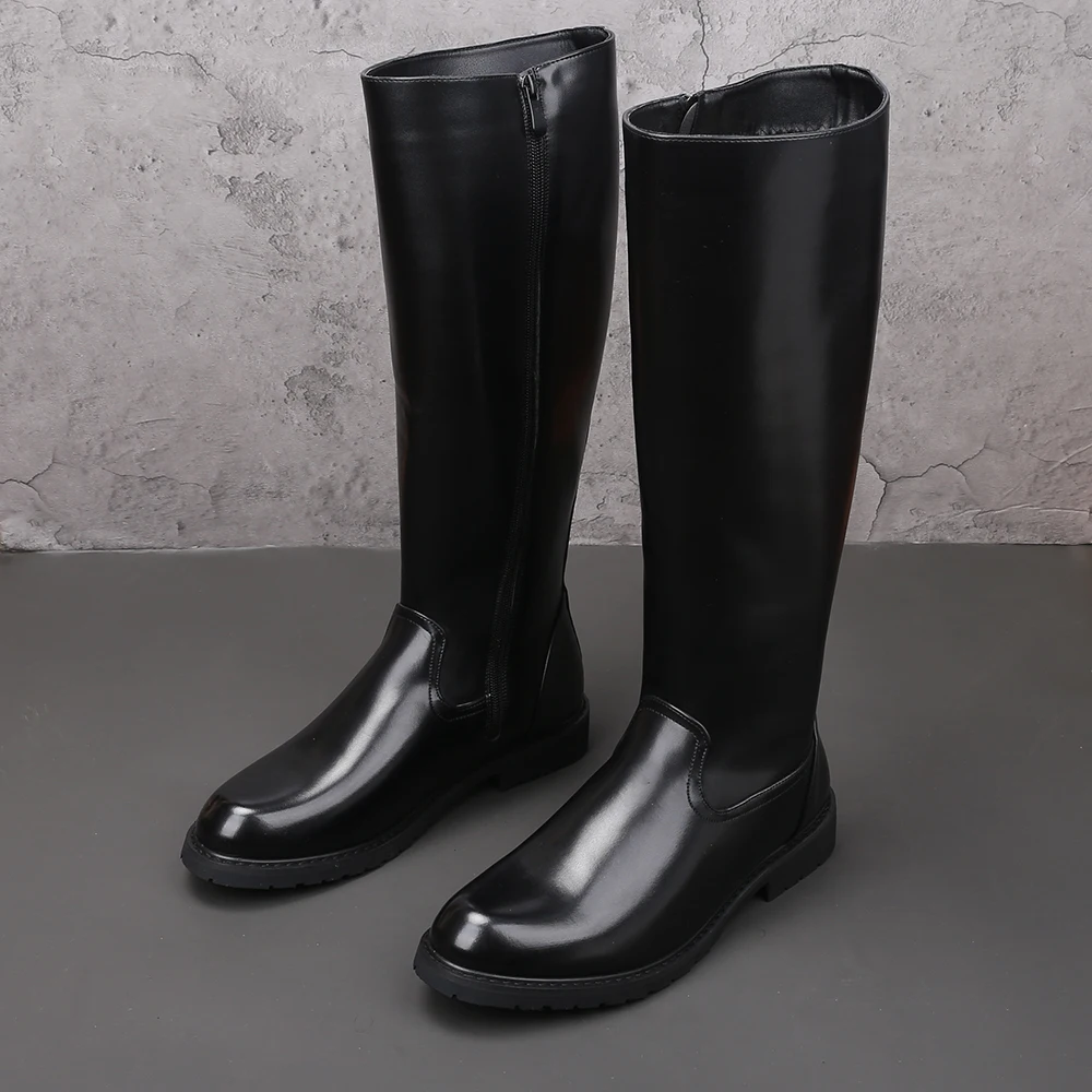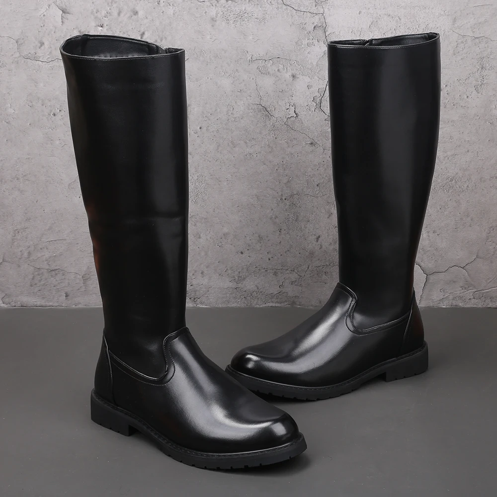 mens casual cosplay performance show high motorcycle boots genuine leather shoes cowboy autumn winter boot long knight botas man