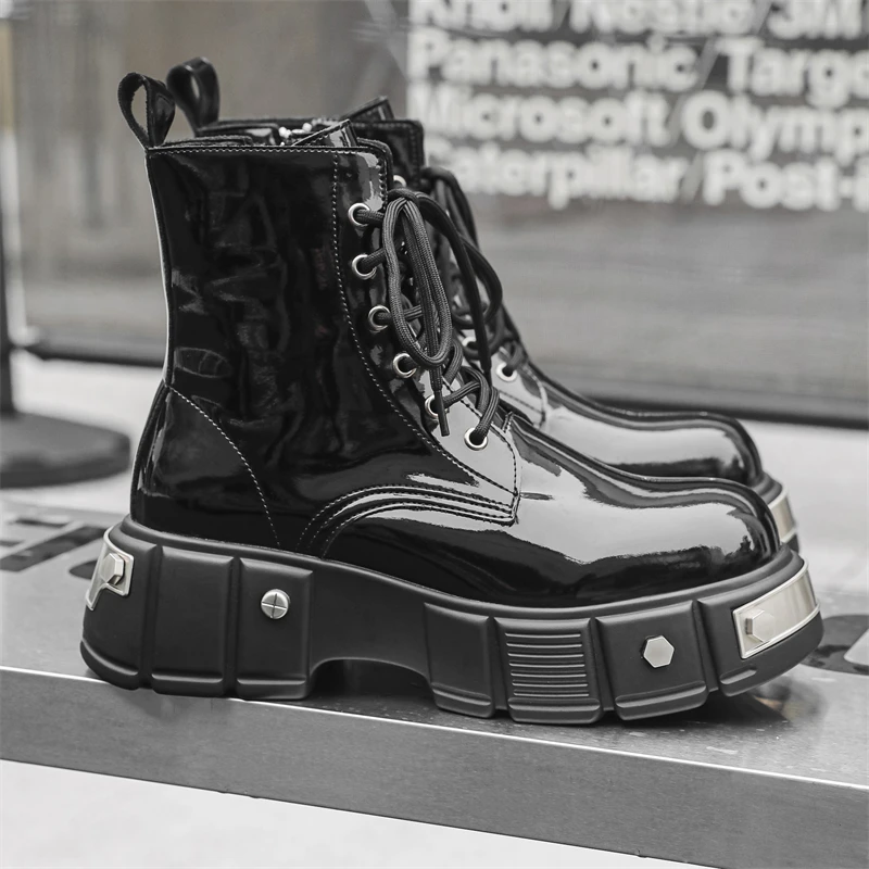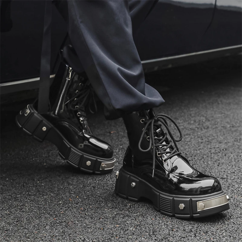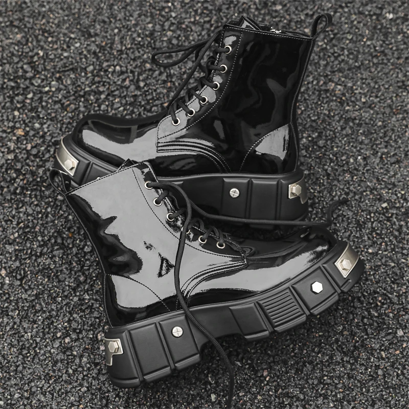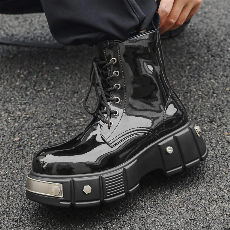 men's casual punk goth dress patent leather boots brand designer shoes cowboy platform boot cool long motorcycle botas masculina