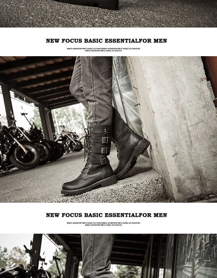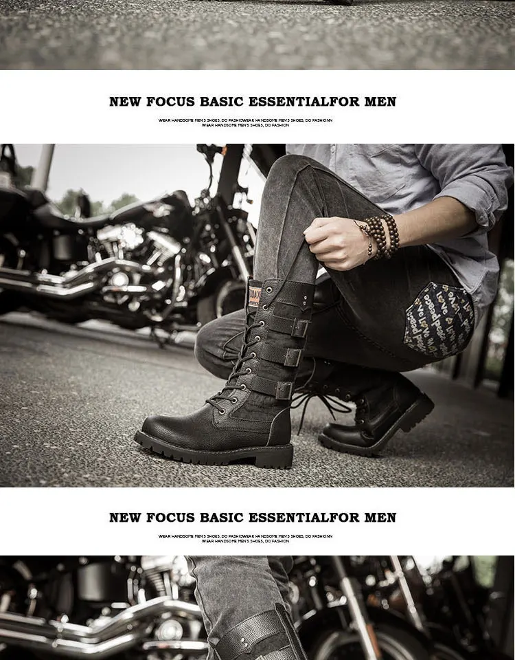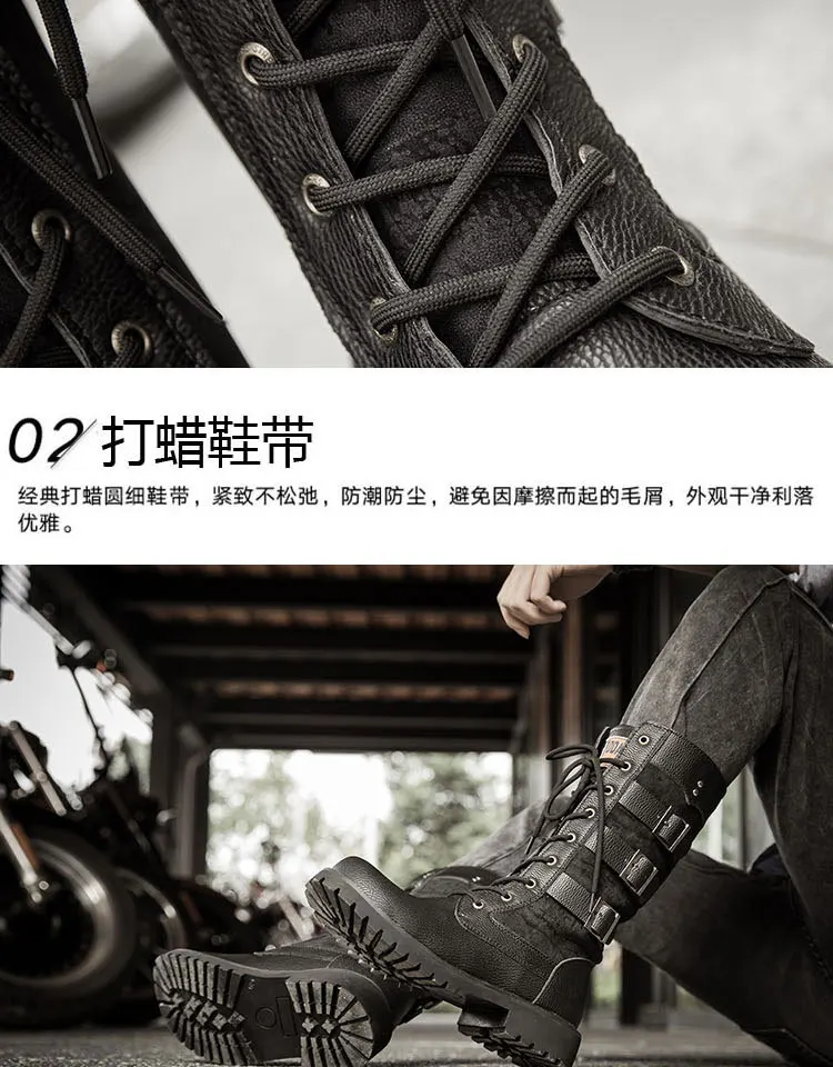Men's Cowboy Boots High Top Inner Heightening Shoes High Breathable Boots Plus Size Shoes Casual Sneakers Motorcycle Boots