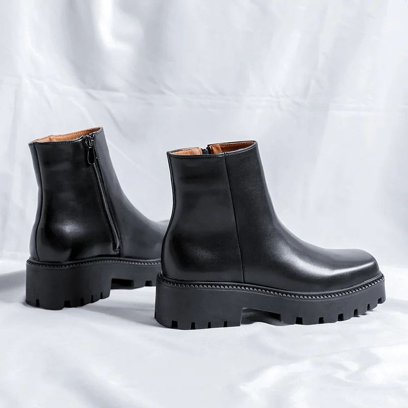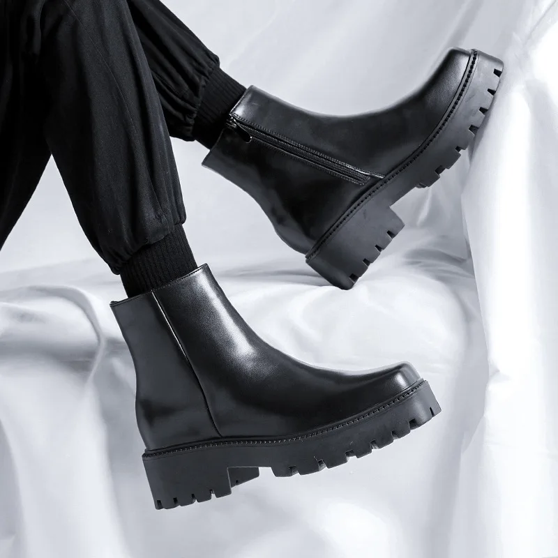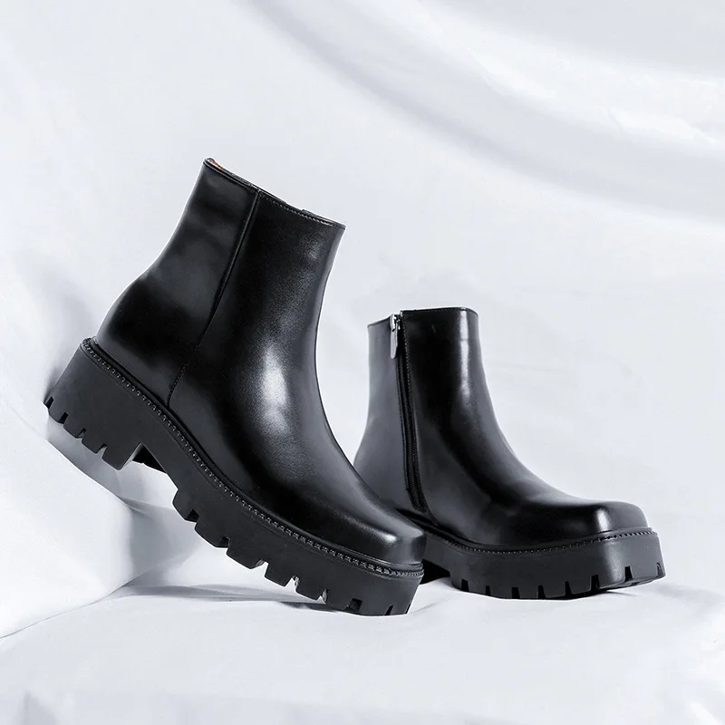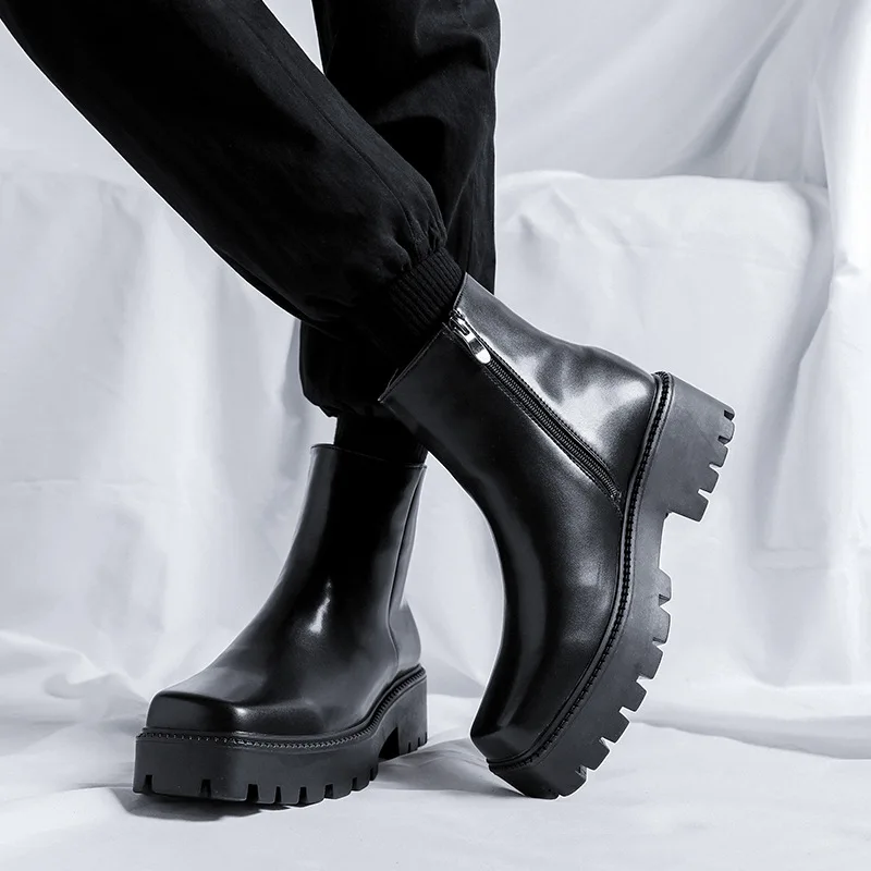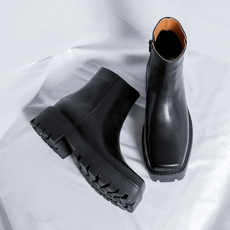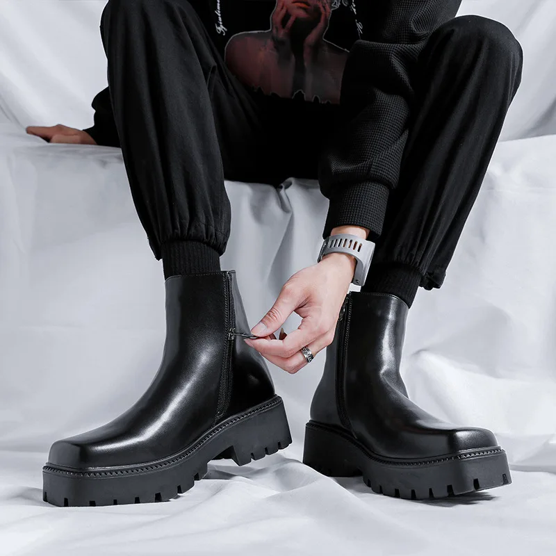 mens fashion punk rock dress high chelsea boots square toe platform shoes cowboy original leather boot handsome motorcycle botas