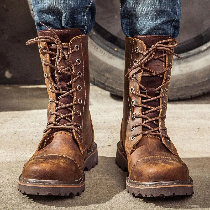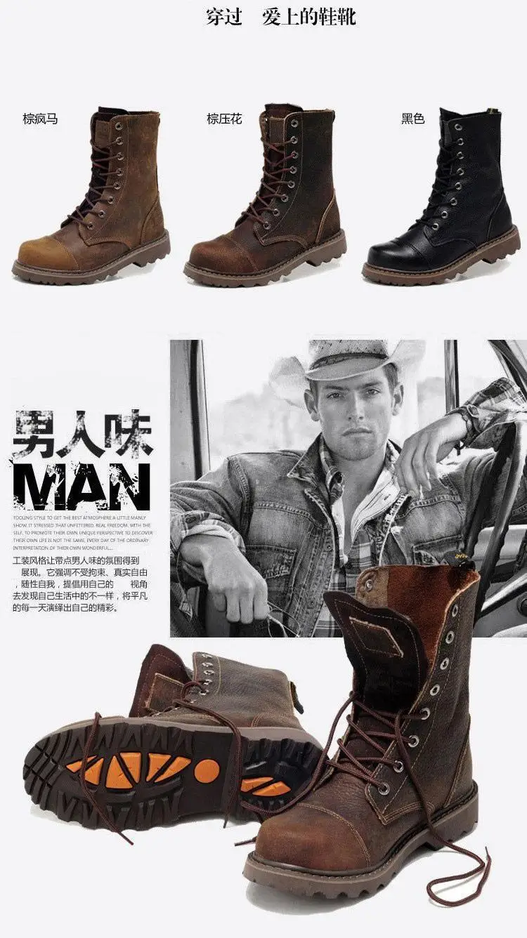 Men's Mid-calf Shoes High Tube Work Shoes Couples Outdoor Motorcycle Boots Large Size Women's Boots Winter Plush Cotton Shoes