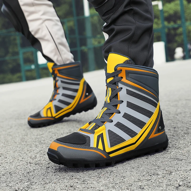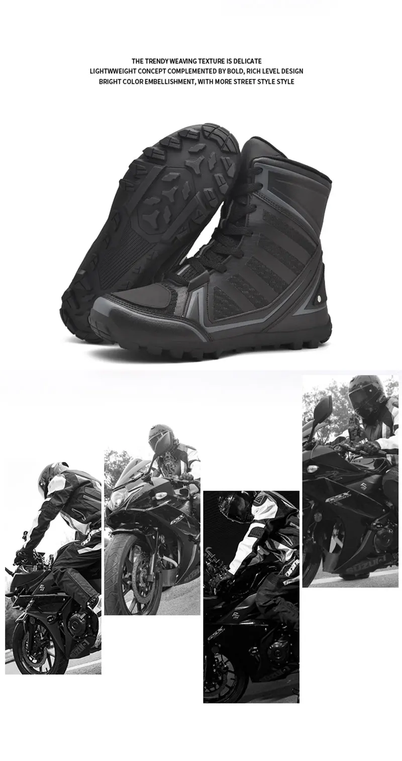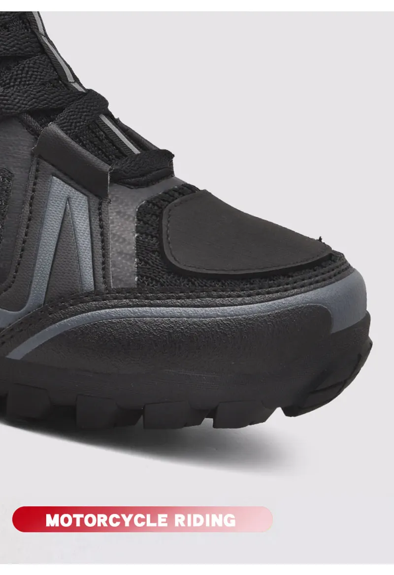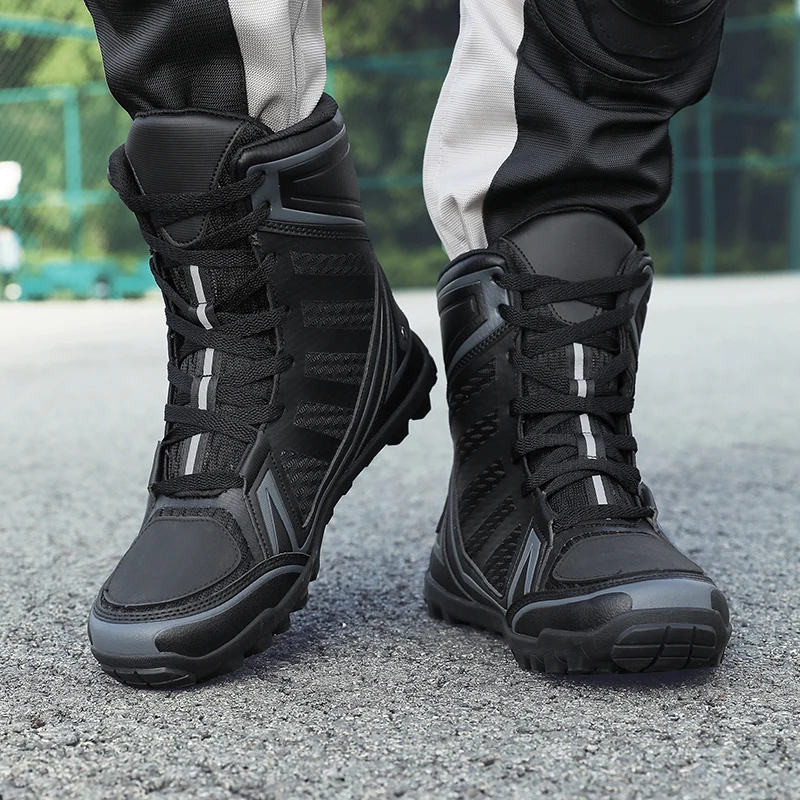 Men's Motorcycle Boots New Breathable Stripe Motos Riders Shoes Outdoor Motocross Protective Boots Hiking Non-slip Sports Shoes