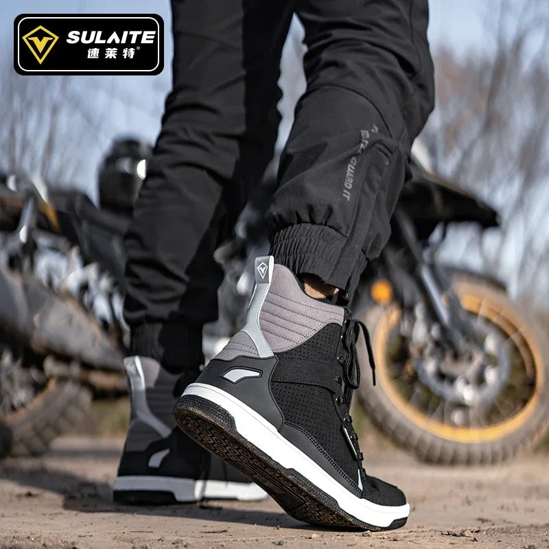 Men's Riding Motorcycle Boots Microfiber Leather Moto Motocross Summer Breathable Anti-fall Rider Road Casual Shoes