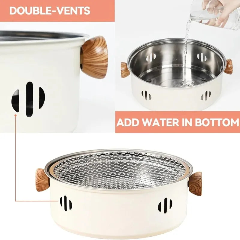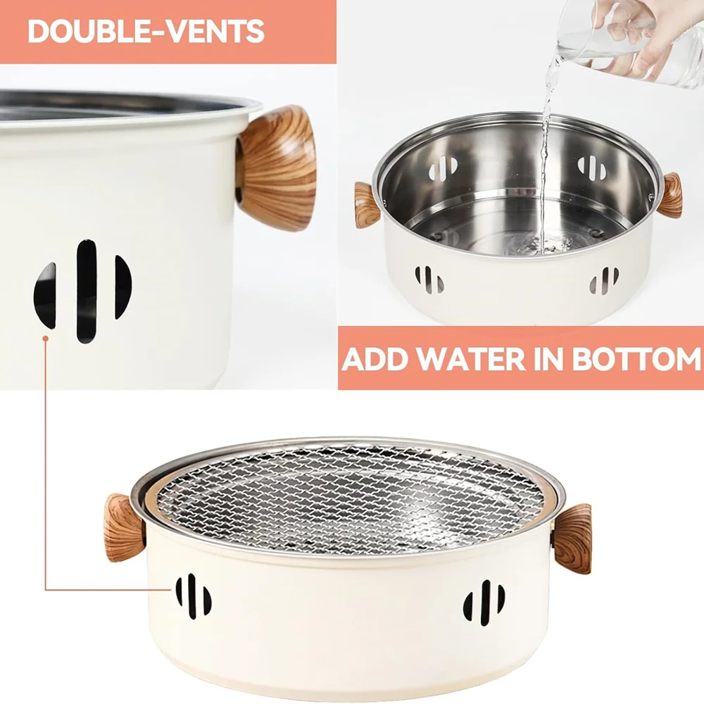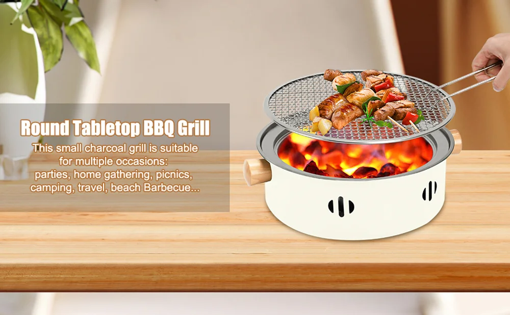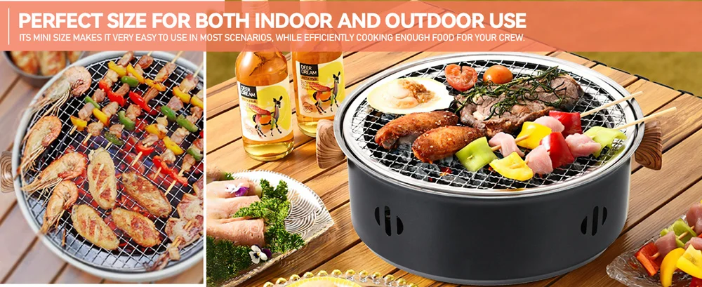 PORTABLE BARBECUE GRILL : This round tabletop grill has a diameter 12.5 inches and a height of 4 inches, weighing only 0.6kg. It can be easily used indoors or outdoors, perfect for portability without sacrificing grilling space, easy to assemble.