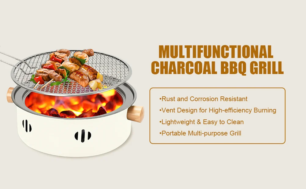 PRODUCT INCLUDES : This charcoal barbecue grill include following components : 1×grill body with anti-sacld handles, 1×charcoal bowl, 1×BBQ grill net, 1×anti-scald lifter. This mini BBQ charcoal grill comes equipped with everything you need for a complete grilling experience.