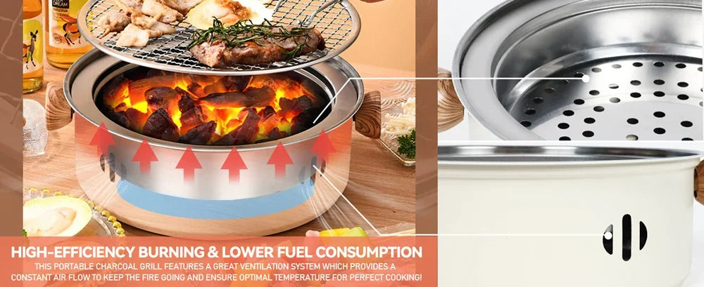 ENHANCED DURABILITY : The mini barbecue grill is made of food grade stainless steel, corrosion resistant and easy to carry. This portable charcoal grill is washable and durable, providing a superior grilling experience.