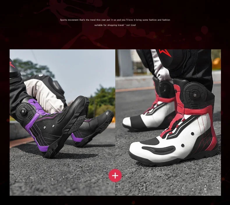 Motorcycle Ankle Boots Racing Shoes Men Riding Durable Anti-Slip Grip Anti-kick protection Quick Lock moto Equipment Motorbike
