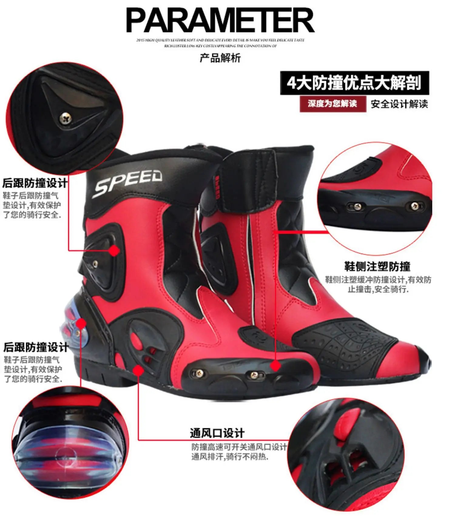 Motorcycle Boots Feet Protection High-Speed Pro-Biker Microfiber Men's Boats Moto Motorbike Race Boot Breathable Anti-fall Shoes