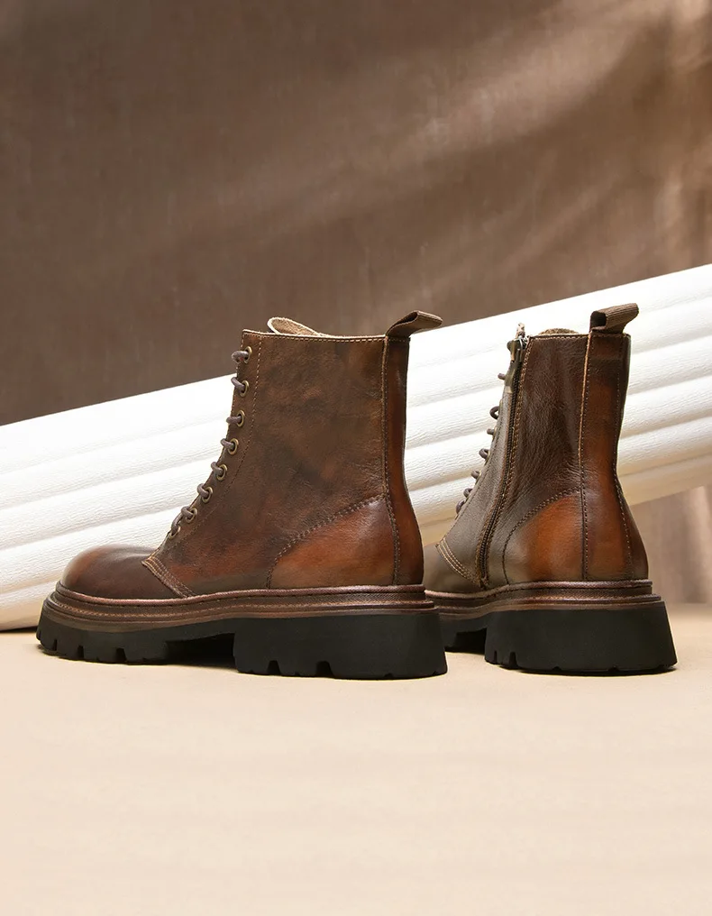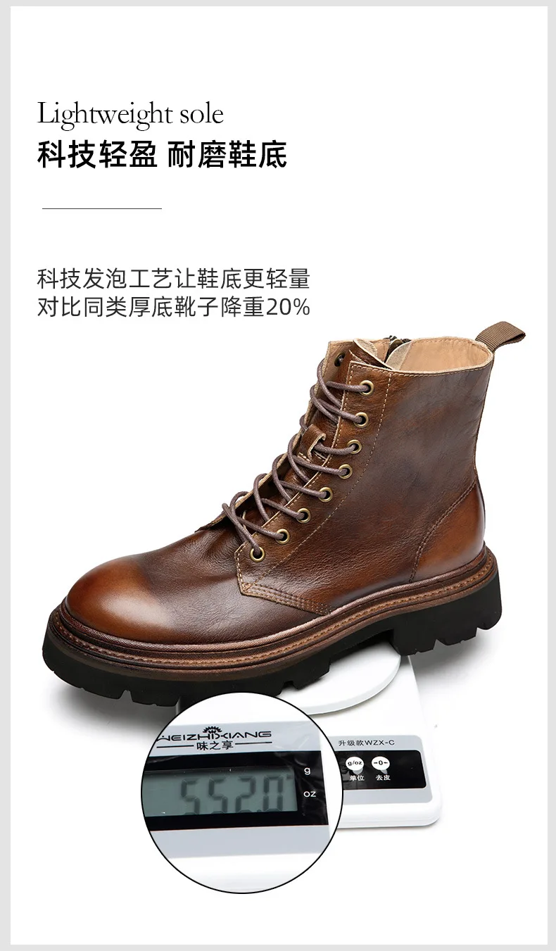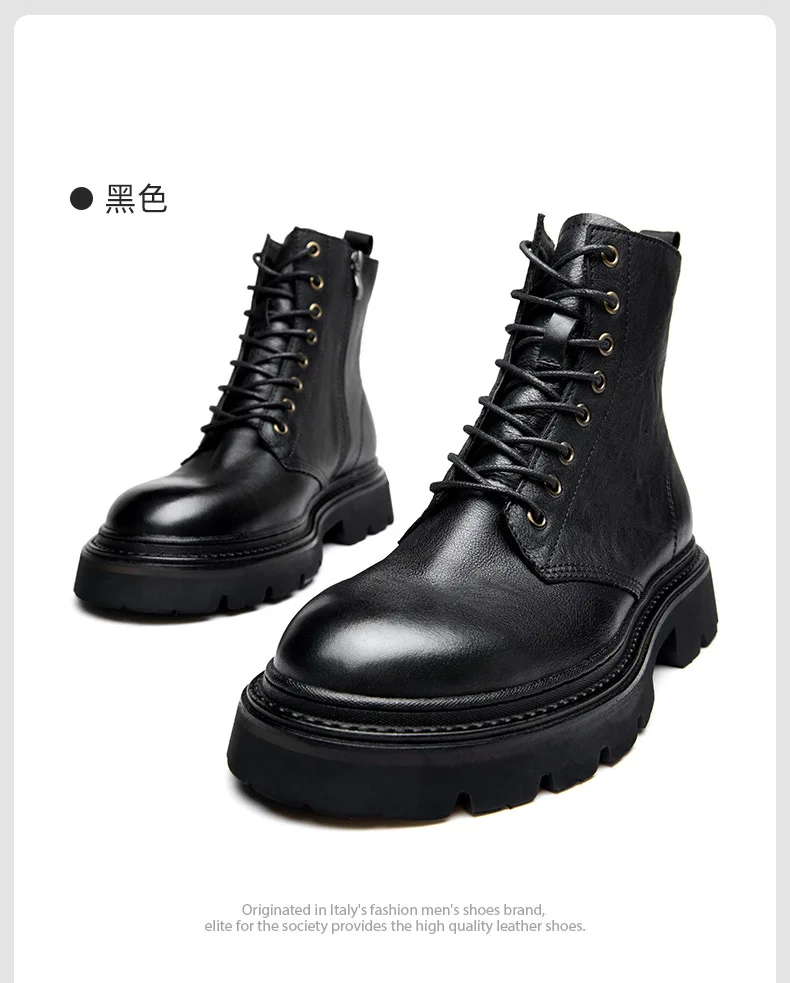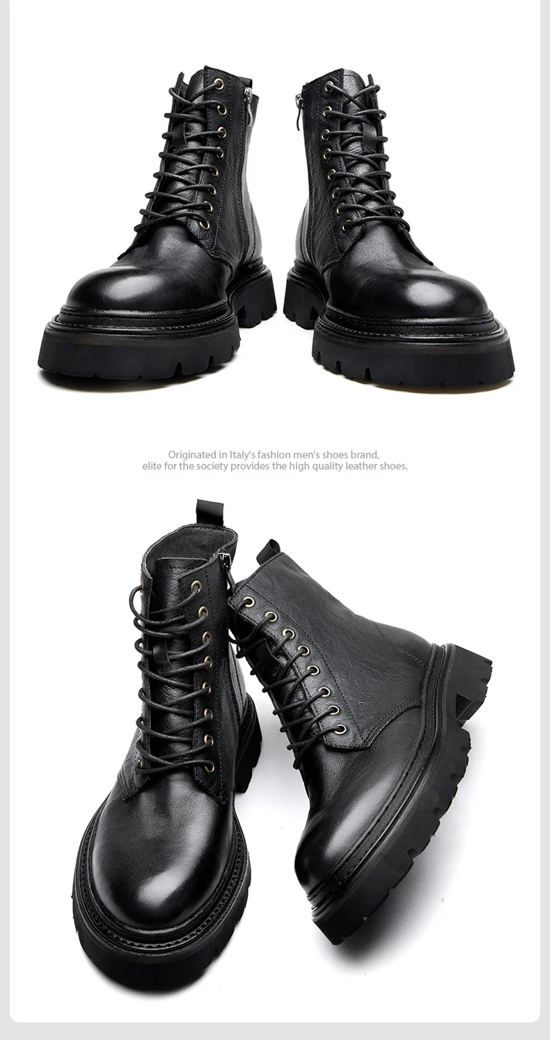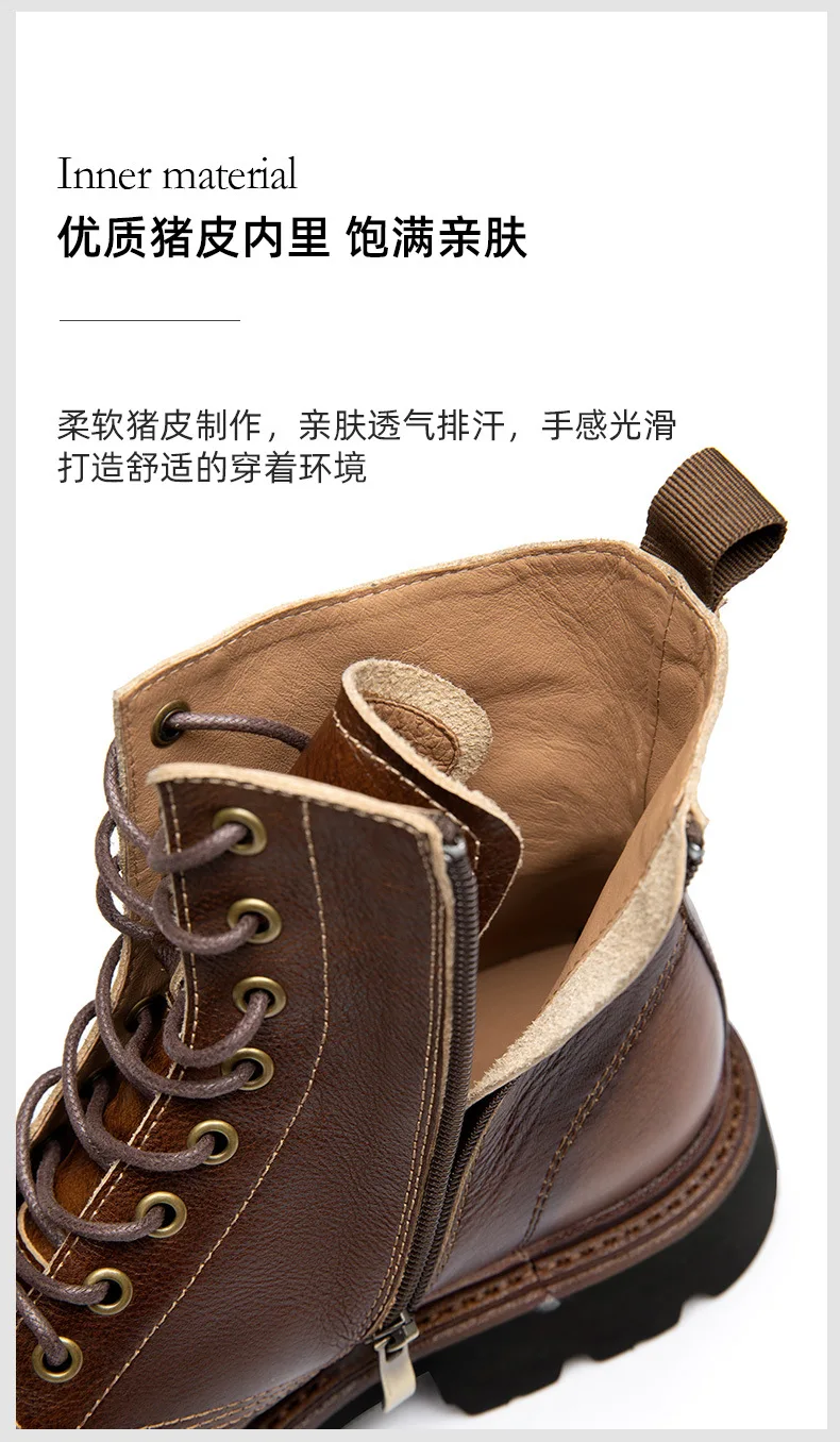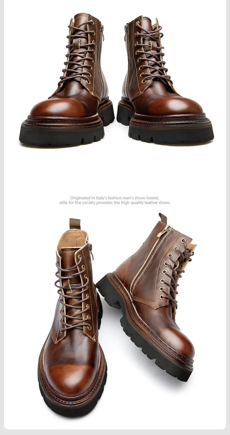 Motorcycle Boots Men Genuine Leather Retro Motorbike Ankle Boots Thick Soled Wear Resistant High Top Cowhide Shoes EU 38-44