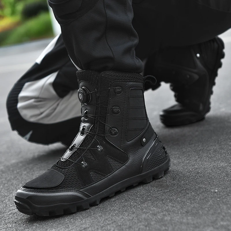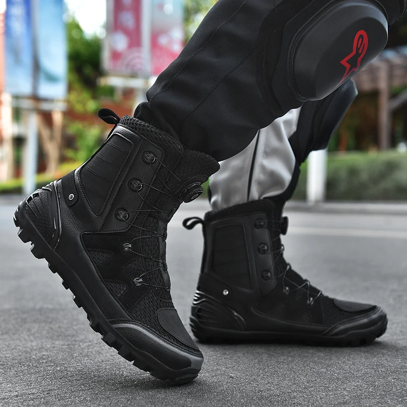 Motorcycle Boots Men Moto Riding Boots Four Seasons Breathable Motorcycle Shoes Motorbike Chopper Cruiser Touring Ankle Shoes