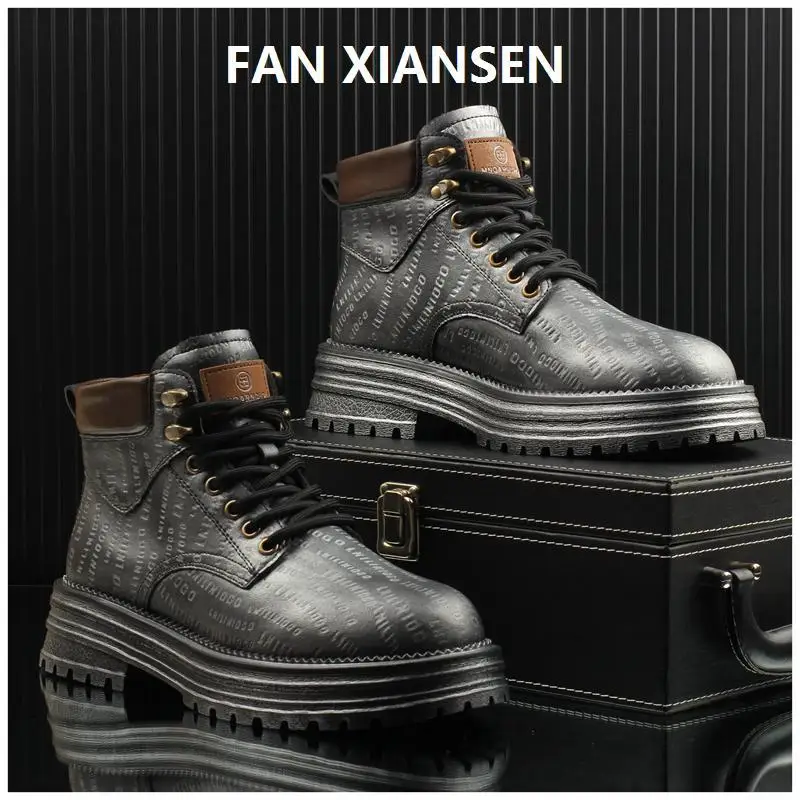 Motorcycle cycling shoes Ankle Boots Casual Sneaker Leather Shoes Loafers Boots for Men Sports and Wear Round Toe Army Boots