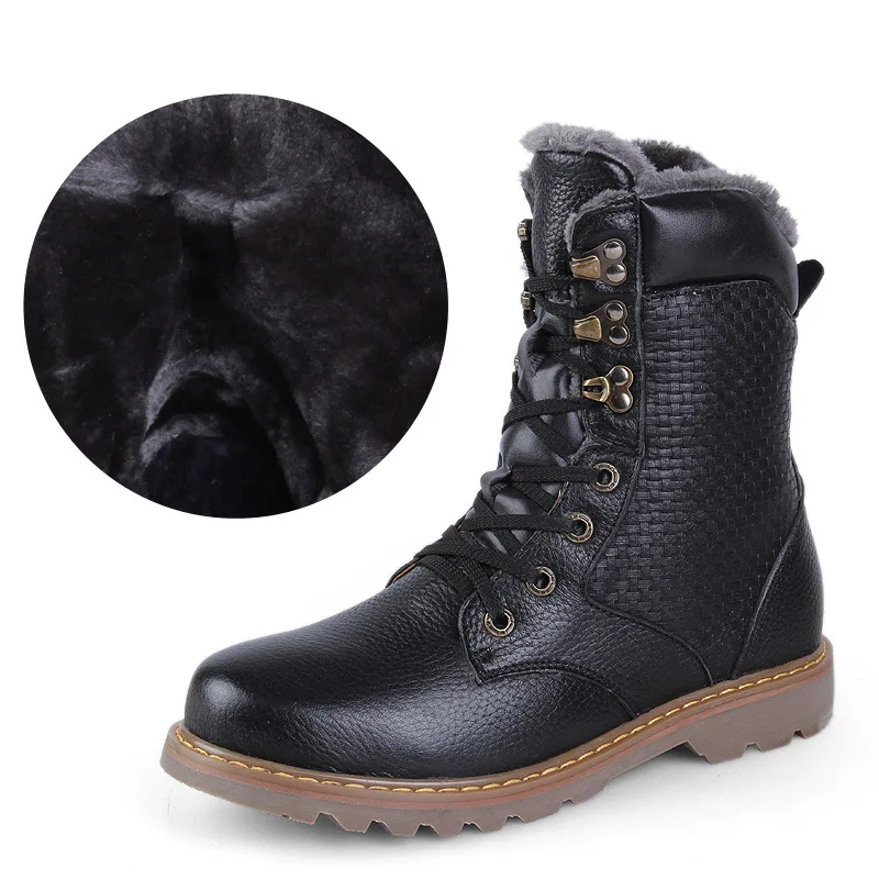 Motorcycle Male Boots velvet Winter Men warm Leather Tooling Shoes Fashion Retro Mid- Calf Male Motorcycle Punk Boots Rock Shoes