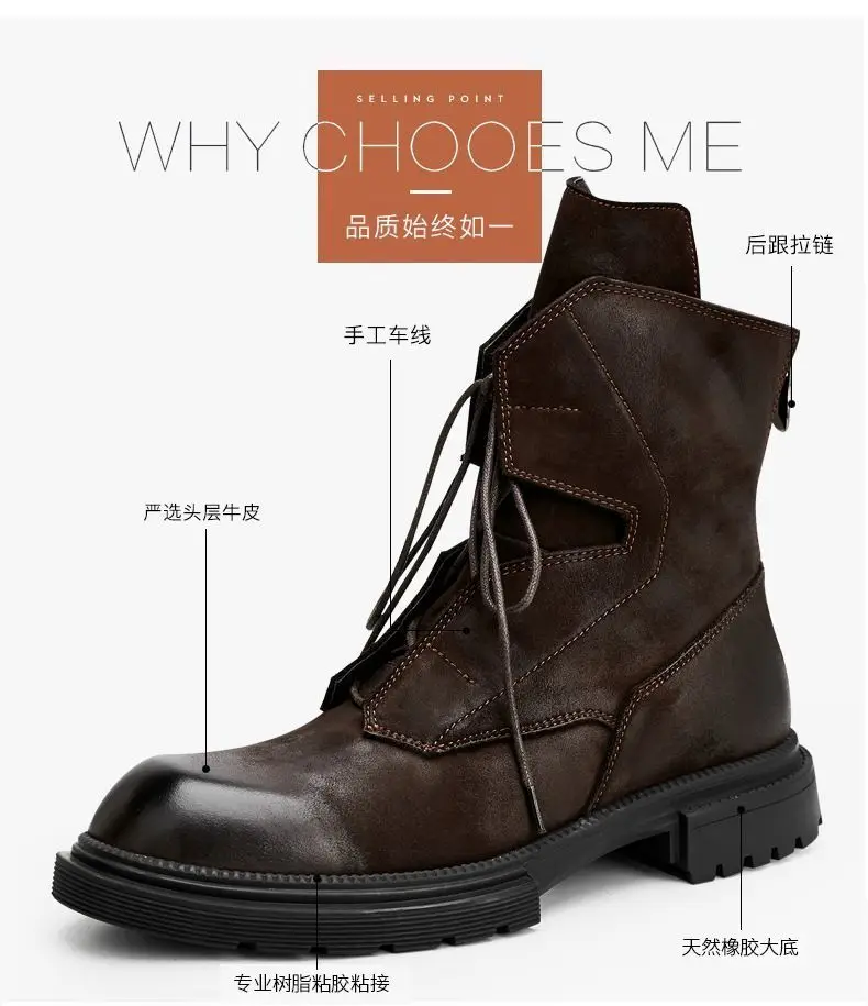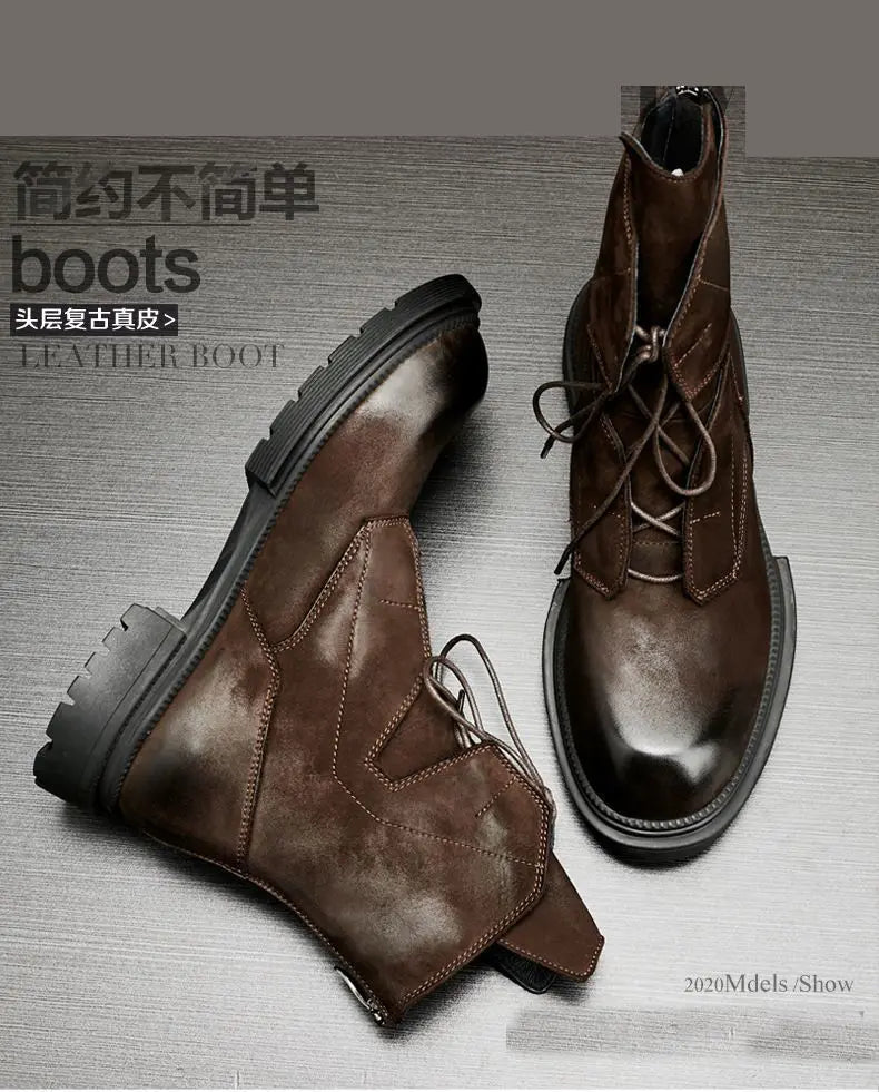 Motorcycle Riding Boots Genuine Leather British Leather Boots High Top Shoes Handmade Retro Men Leather Work Boot