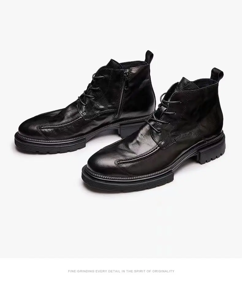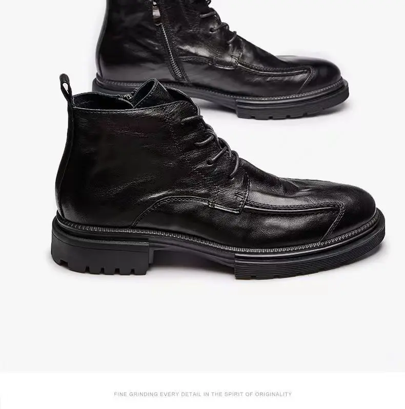 Motorcycle Riding Boots Genuine Leather British Leather Boots High Top Shoes Handmade Retro Men Leather Work Boot