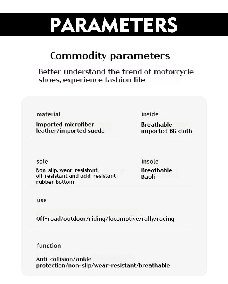 Usage: Motorcycle shoes, bicycle shoes, bicycle boots, outdoor off-road shoes, racing shoes, motorcycle shoes, crash shoes, motorcycle boots, hiking shoes, fishing shoes