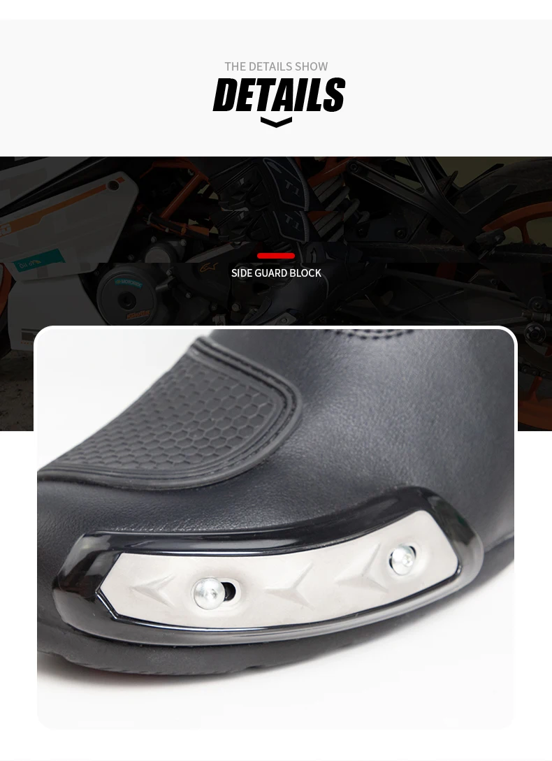 Comfortable and Safe for all day riding on the street or on the Track. Super High Fiber Leather Material is Stronger and more Breathable than Leather. Comfortable to walk in.