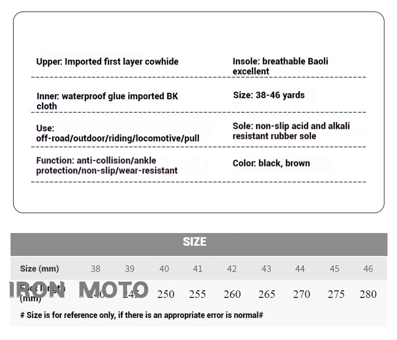 Features: The shoe upper is made of imported top layer cowhide, which is anti-collision, anti slip, wear-resistant, and scratch resistant. The sole is made of natural rubber, which is not easy to break and has a textured anti slip surface.