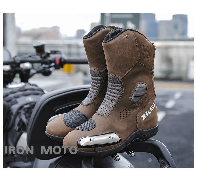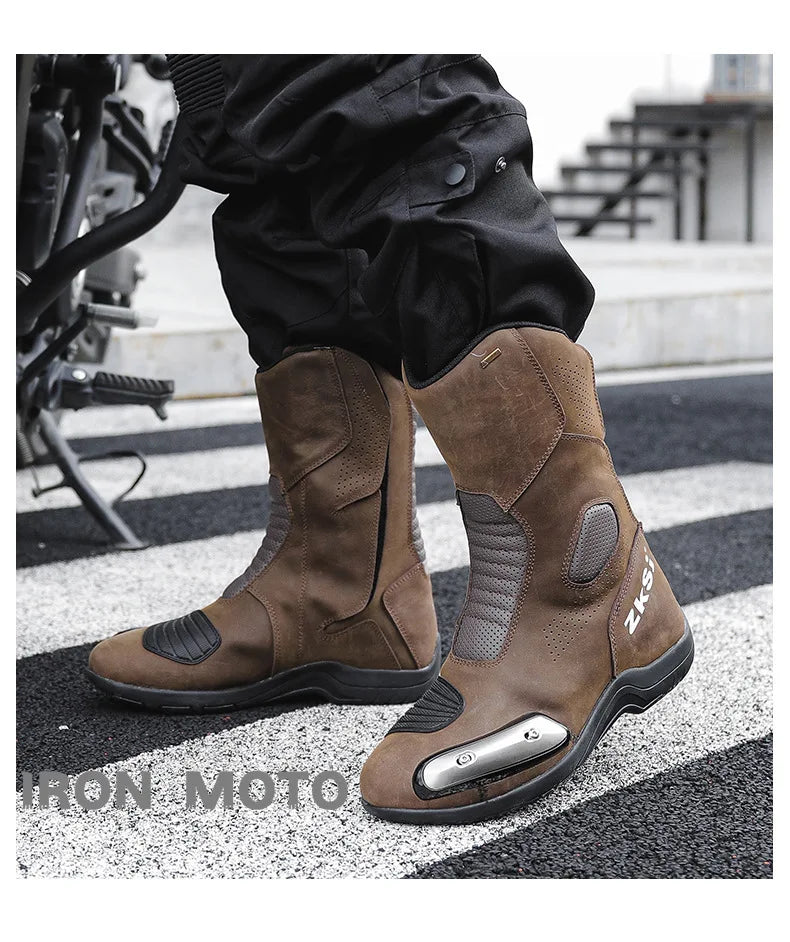 Motorcycle Shoes Full Leather Motocross Boots with Shifter Guard Cafe Boots Enduro Boots for Touring&hiking Moto Protection Gear