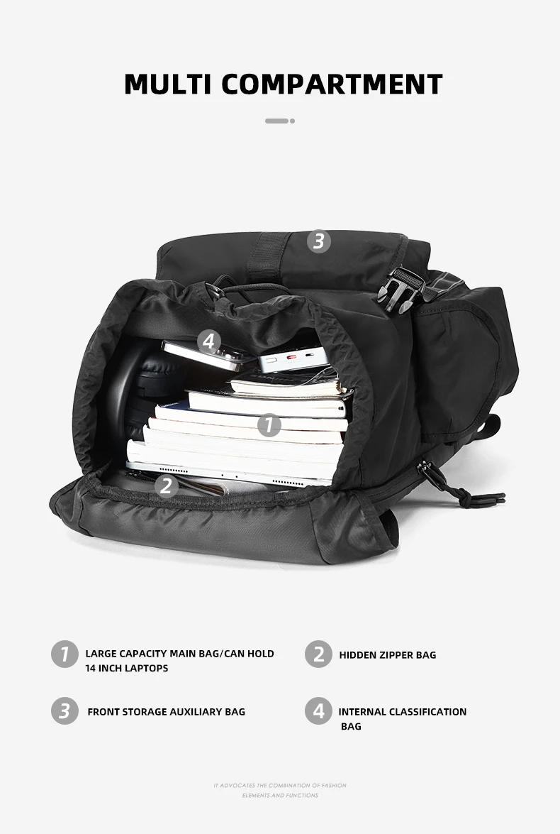 MOYYI Outdoor Waterproof Drawstring Men Women Travel Laptop Backpack Fashion Large Capacity Mountain Climbing Flip Rucksack
