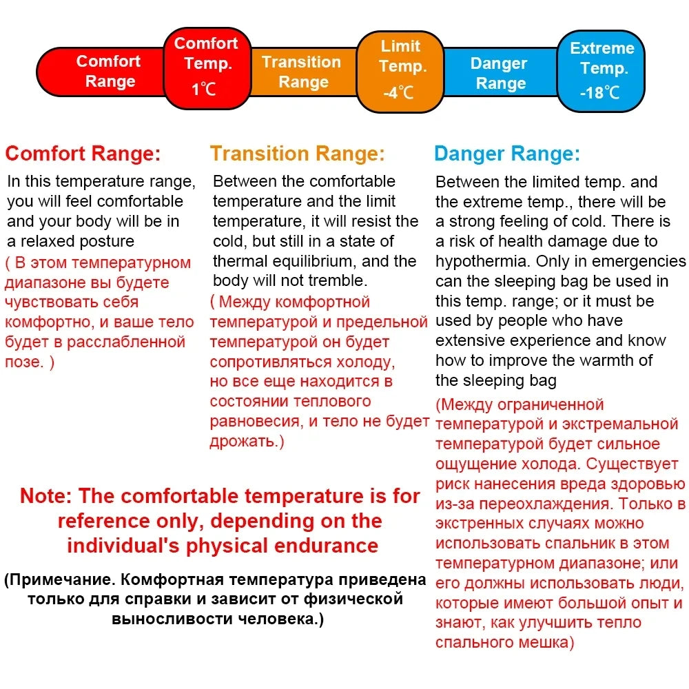 Sleeping Bag Temperature Scale Category: Spring and Autumn Sleeping Bag