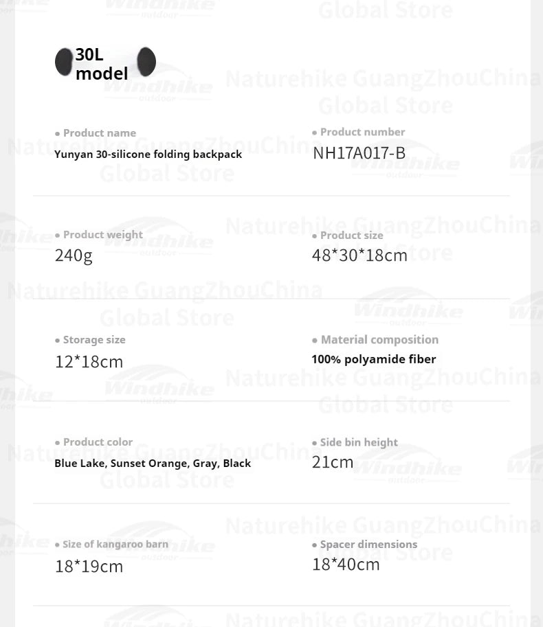 Weight: 230g(Sunset Orange Is Slightly Heavier Due To Thicker Fabric Coating)
