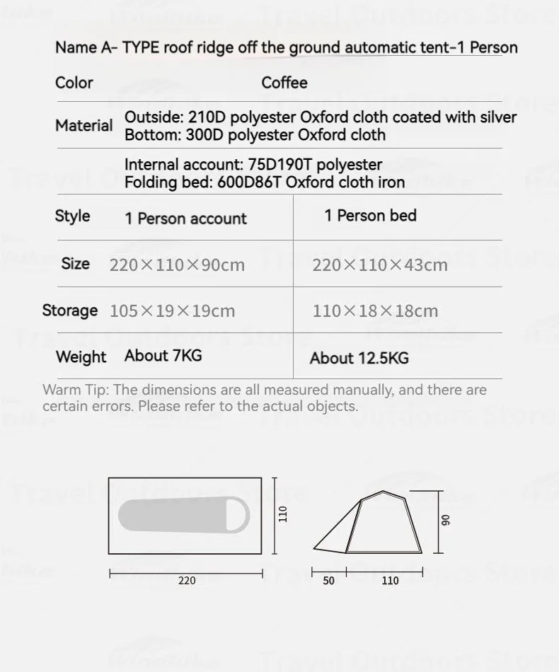 Type: Automatic Tent,1-2 Persons Tent / 1-2 Persons Bed