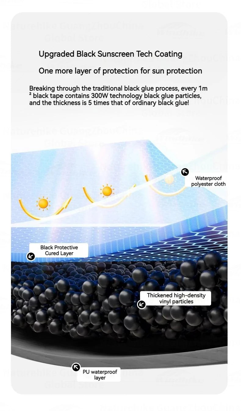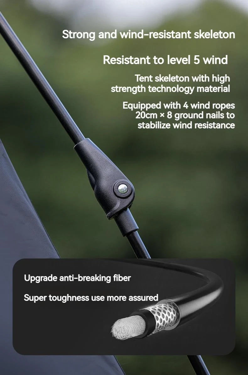 Fabric: 150D Oxford Fabric(PU3000 Waterproof;UPF50+ Sunscreen),Glass Fiber Automatic Bracket, B3 Polyester Mesh