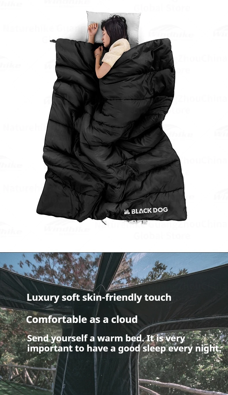 Naturehike BLACKDOG Envelope Sleeping Bag Double Spring Autumn Quilt 210T Camping Ultralight Outdoor Travel Adult Sleeping Bag