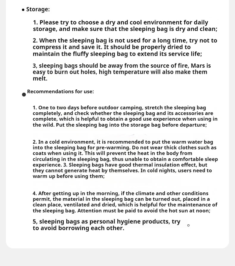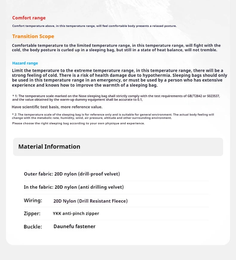 Sleeping Bag Temperature Scale Category: Winter Sleeping Bag