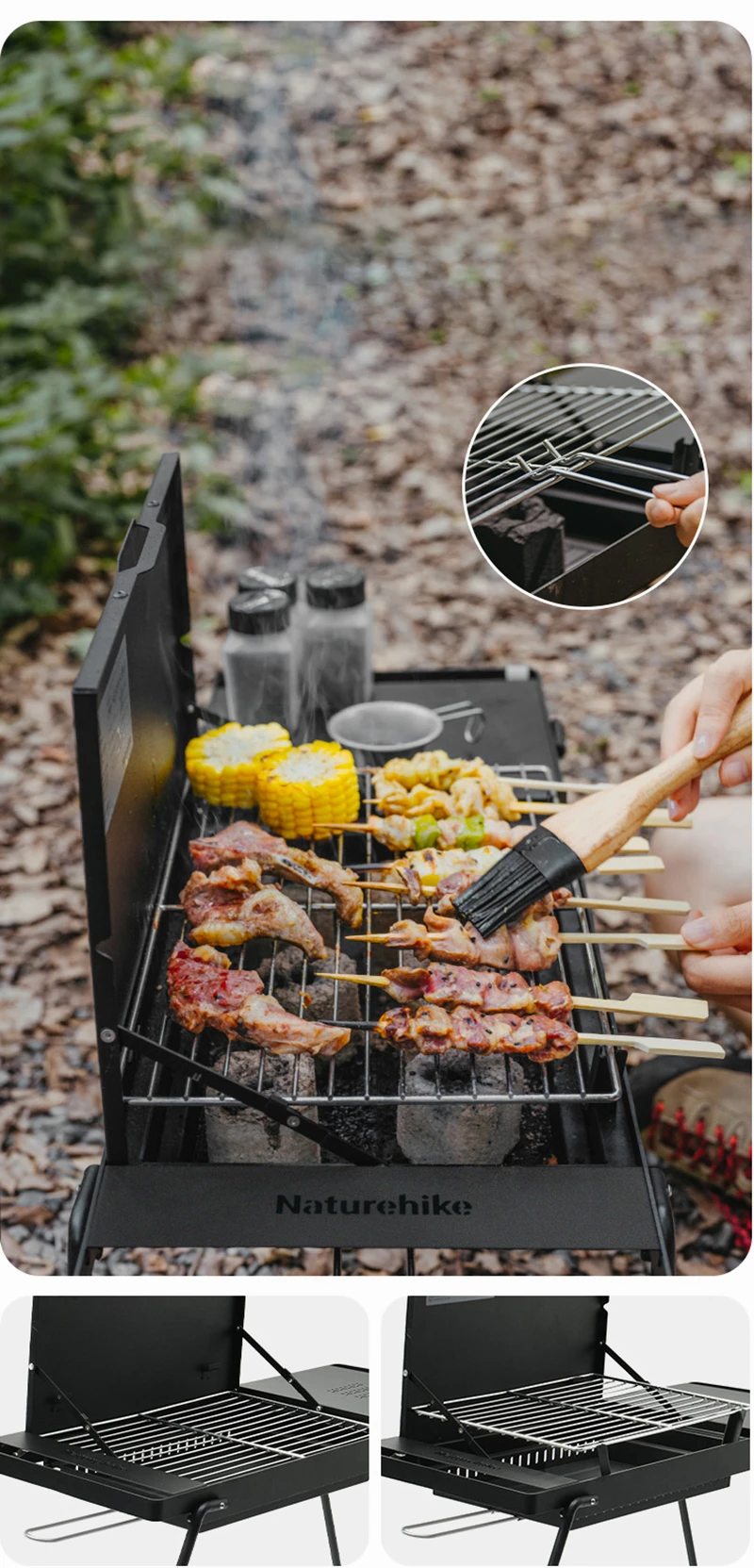 Naturehike Camping Portable Foldable Barbecue Grill Outdoor Mini Camping Grilling Rack 2-speed Adjustable Fire Mini BBQ Table