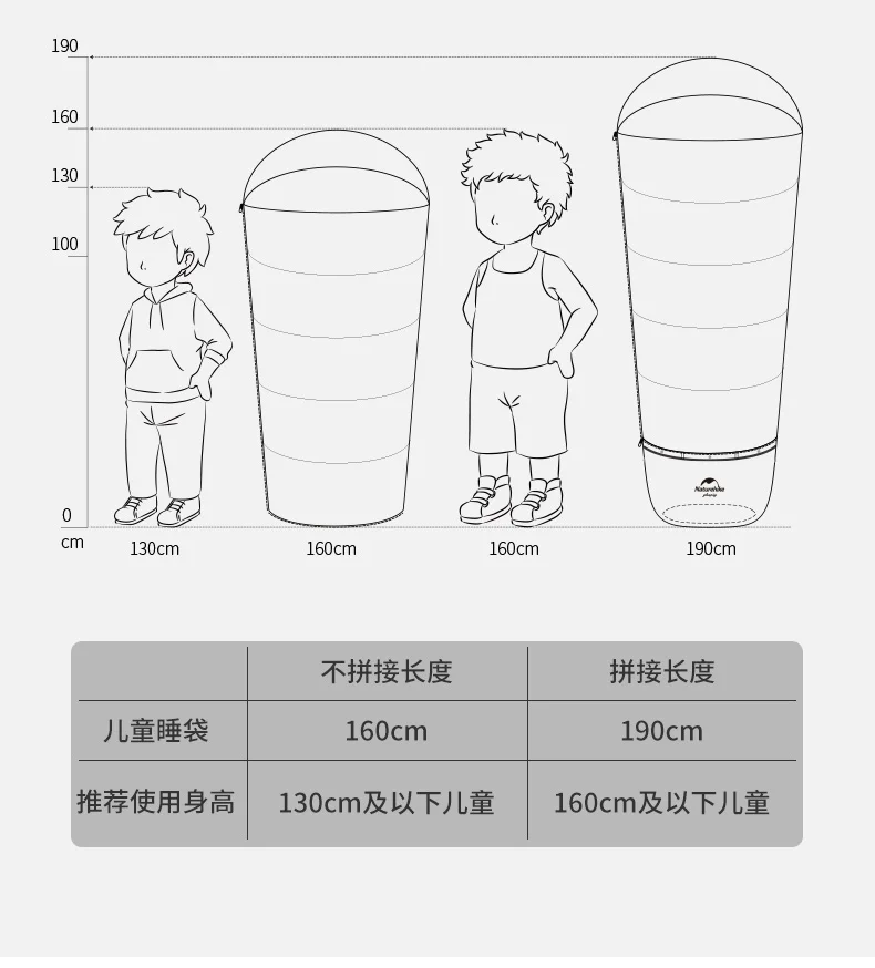 Naturehike-Children's Sleeping Bag, Extended Splicing, Camping, Hiking, Warm, Mummy, Outdoor