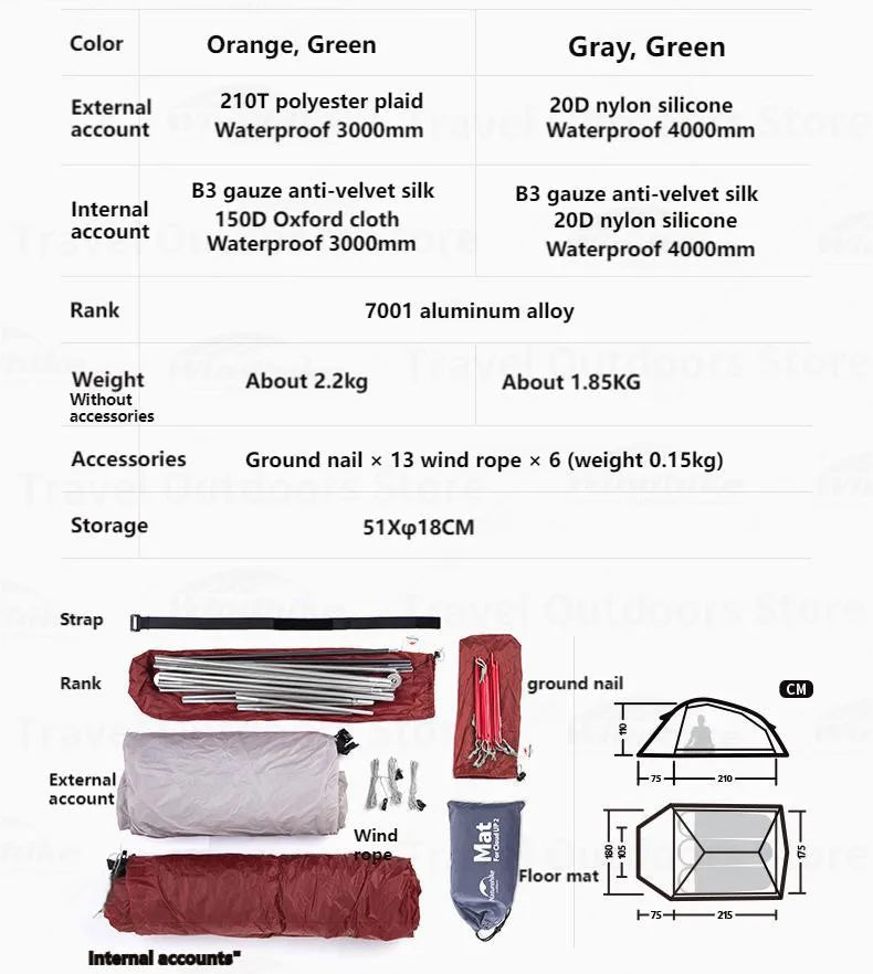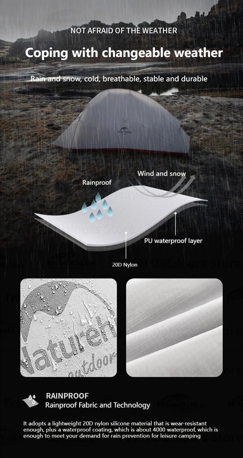 Naturehike Cloud Up 1 2 3 Tent Outdoor Camping Waterproof Tent ProfssIonal Glamping Hiking Backpacking Shelter Tent Portable